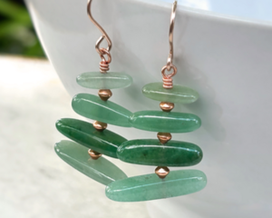 Green Aventurine Copper Earrings, Rose Gold Ear Wires