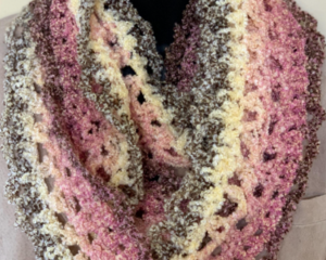 Pink Brown Cream Infinity Scarf - Crocheted with Rare Boucle ...