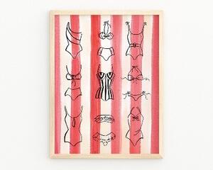 Pink Vintage Swimsuit Watercolor Art Print, Fashion Illustrat...
