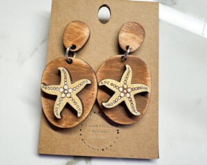 Hand-Painted Starfish Wooden Earrings – Beachy Coastal Summer...
