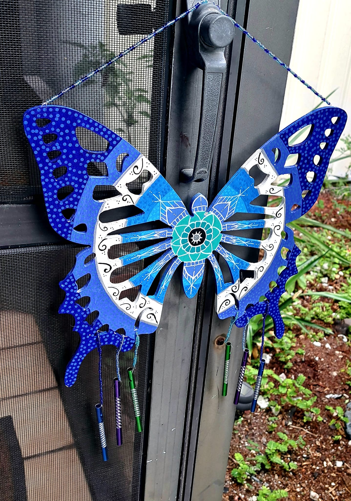 Colorful Mandala Butterfly Wood Hanging Decor – Handmade & Unique
