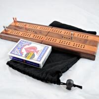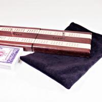 Our Compact Travel Cribbage – Black Cherry & Black Walnut for 2 players – the perfect accessory for cribbage enthusiasts on the go!