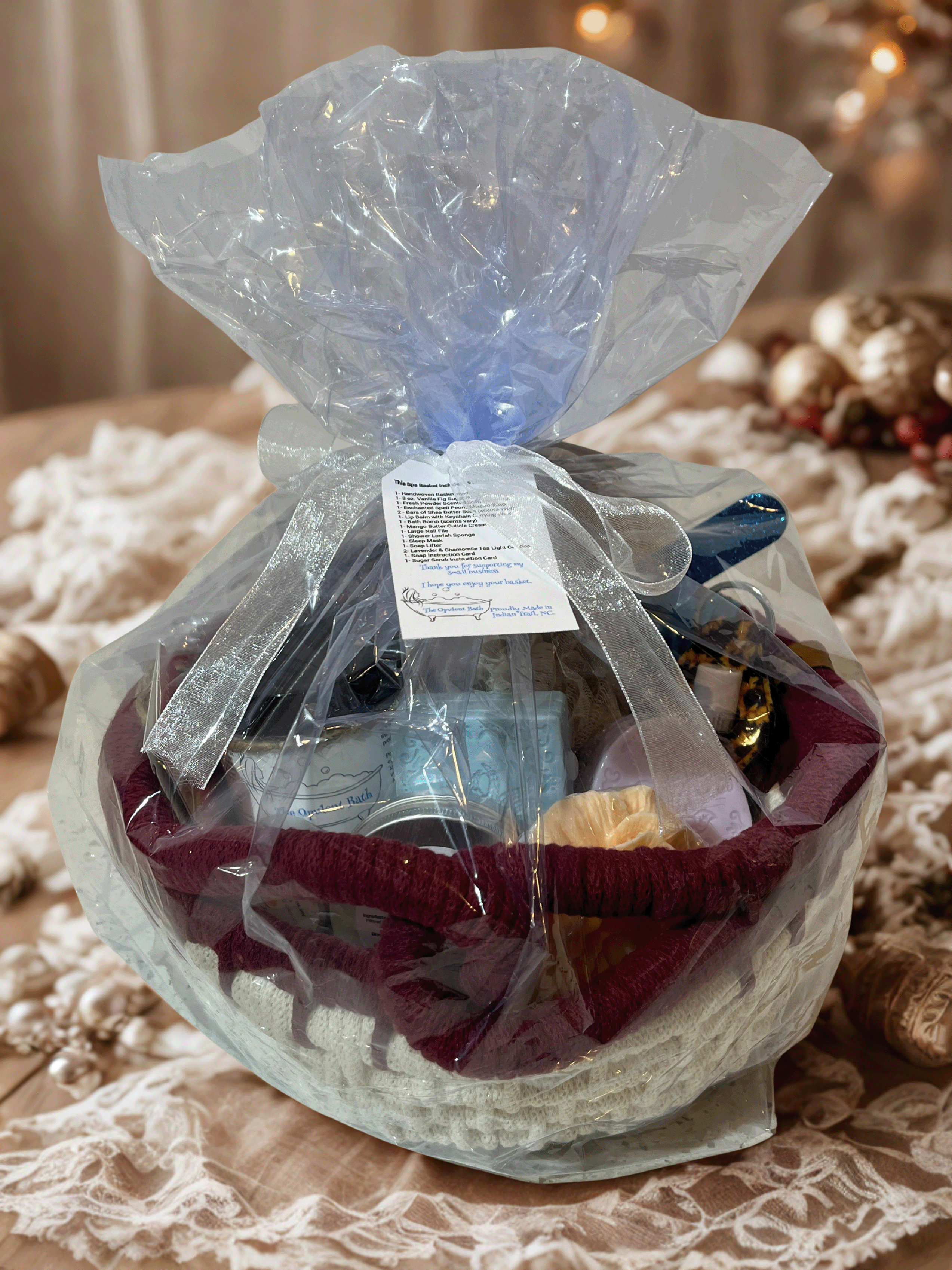 All spa baskets are beautifully wrapped in cellophane with a bow—complimentary, just for you! Please let me know if you would like to send a gift note.