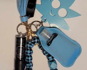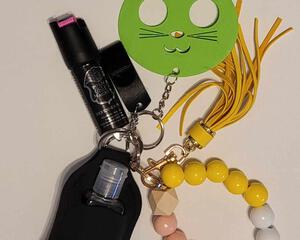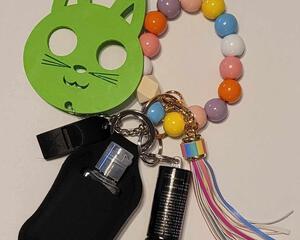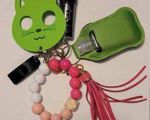 Green cat safety keychain with accessories