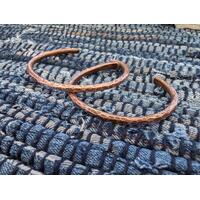 Copper double hoop earrings with a trio of hammered copper dangles. Lampwork glass orbs in a swirl of blues give off a lived in denim vibe. Antiqued for a warm rustic feel and hanging from niobium ear wires (great for anyone with metal allergies).