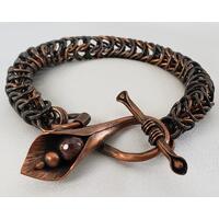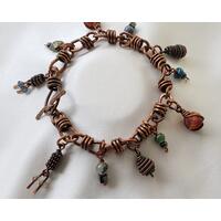 It was at this time that I decided to do what I'd wanted to do for years, make jewelry. I started out with copper because it's easy to get and inexpensive. I thought I'd practice with copper and then move on to sterling silver once I got good at it. The more I worked with copper the more I appreciated how beautiful it is and silver seemed kind of boring in comparison. I tried wire wrapping first because it seemed easier than trying to shape copper sheet. After awhile wrapping wire started to feel tedious and repetitive so I decided to get out my torch and hammers and try shaping copper sheet instead. I watched a few YouTube videos to get an idea of how to start. Once I got going I realized this was what I really enjoyed. Who knew heating copper to a cherry red and beating it with a hammer could be so much fun!