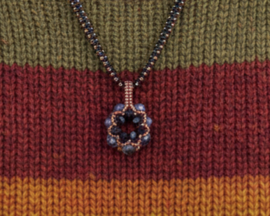Handwoven from shimmering bronze, copper, and black glass beads, this geometric pendant catches the light with every movement. The petal-like form adds softness to its structured design, creating a statement piece that’s both grounded and radiant.