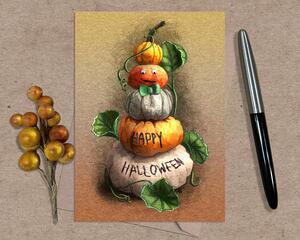 Halloween Stack of Pumpkins Greeting Cards, 5x7" Pack of 6 wi...