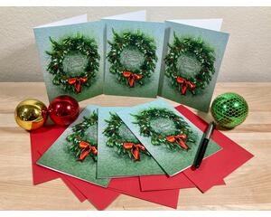 Illustrated Holiday Wreath Christmas Card Set of Six, 5x7" wi...