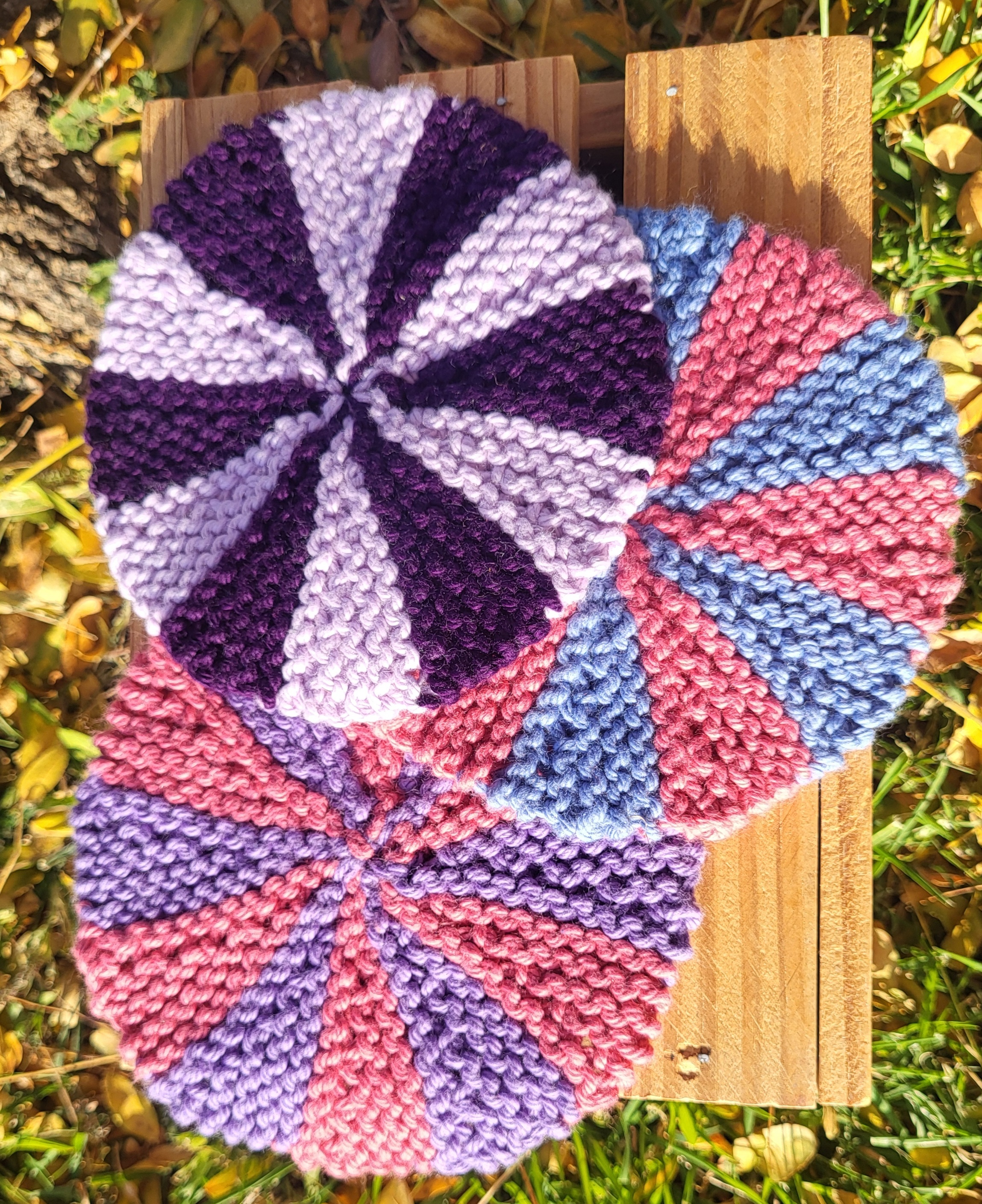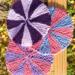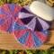 These soft cotton washcloths are perfect in the bath, and soft enough for your face! They also make great dishcloths, or even hot pads for pans! The set has 3 cloths in coordinating pinks and purples. Each cloth is about 5 inches across. (Soap not included!)