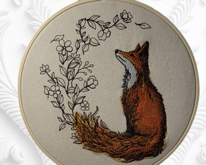 I have embroidered this design onto off white twill and placed it into an 8 inch hoop.