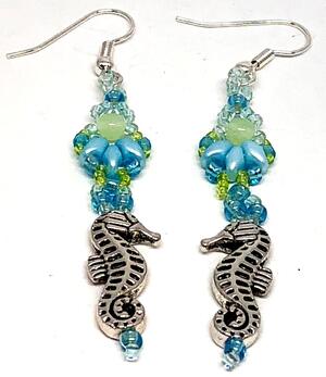 Handmade Gold Blue Bugle Bead Dagger Necklace