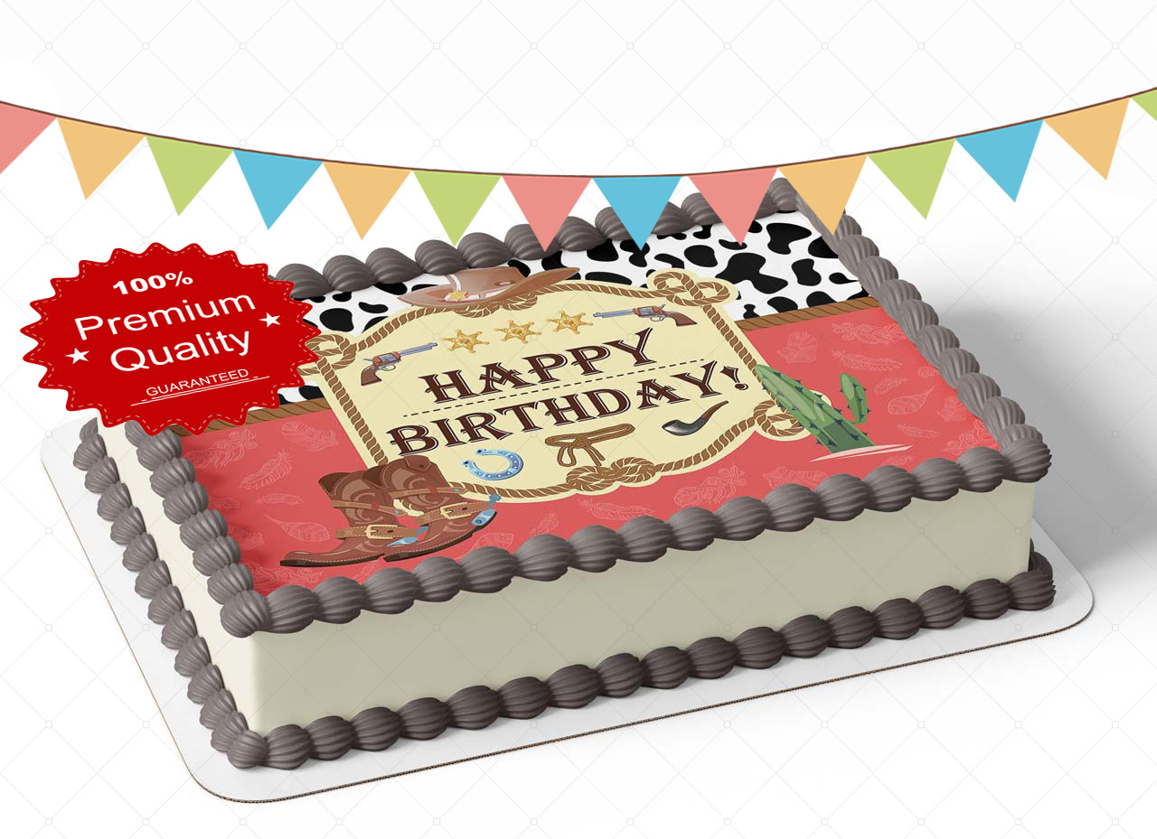 Cowboy Cowgirl Boots Wild West Edible Image Themed Edible Birthday Party Cake Topper Sheet Edible Sticker Decal