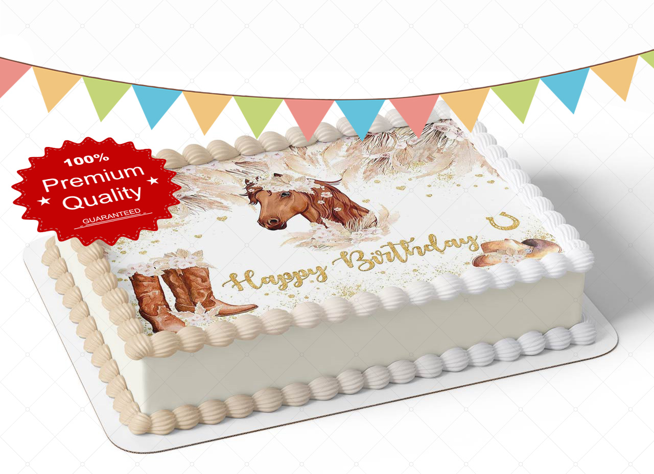Cowgirl Boots Hat Pink Grass Horse Edible Image Themed Edible Birthday Party Cake Topper Sheet Edible Sticker Decal