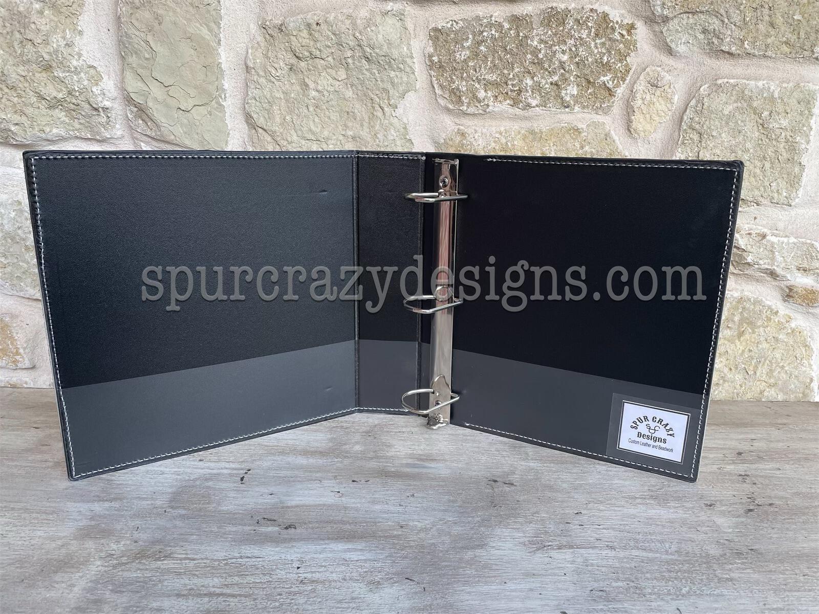 PLEASE NOTE: I do not make the actual binder itself. All materials I add to the binders for customization are 100% leather (excluding metal spots on the leather trim.).