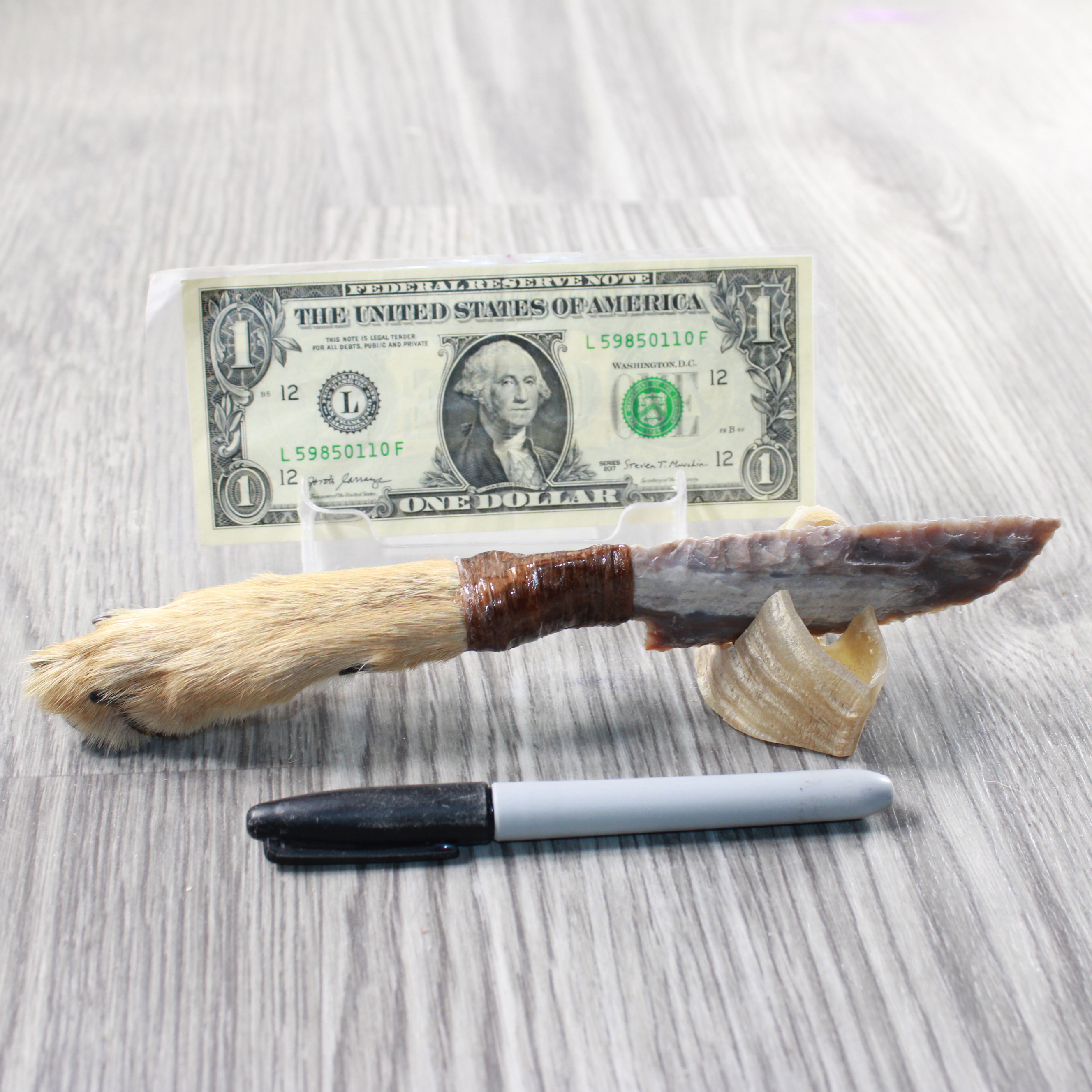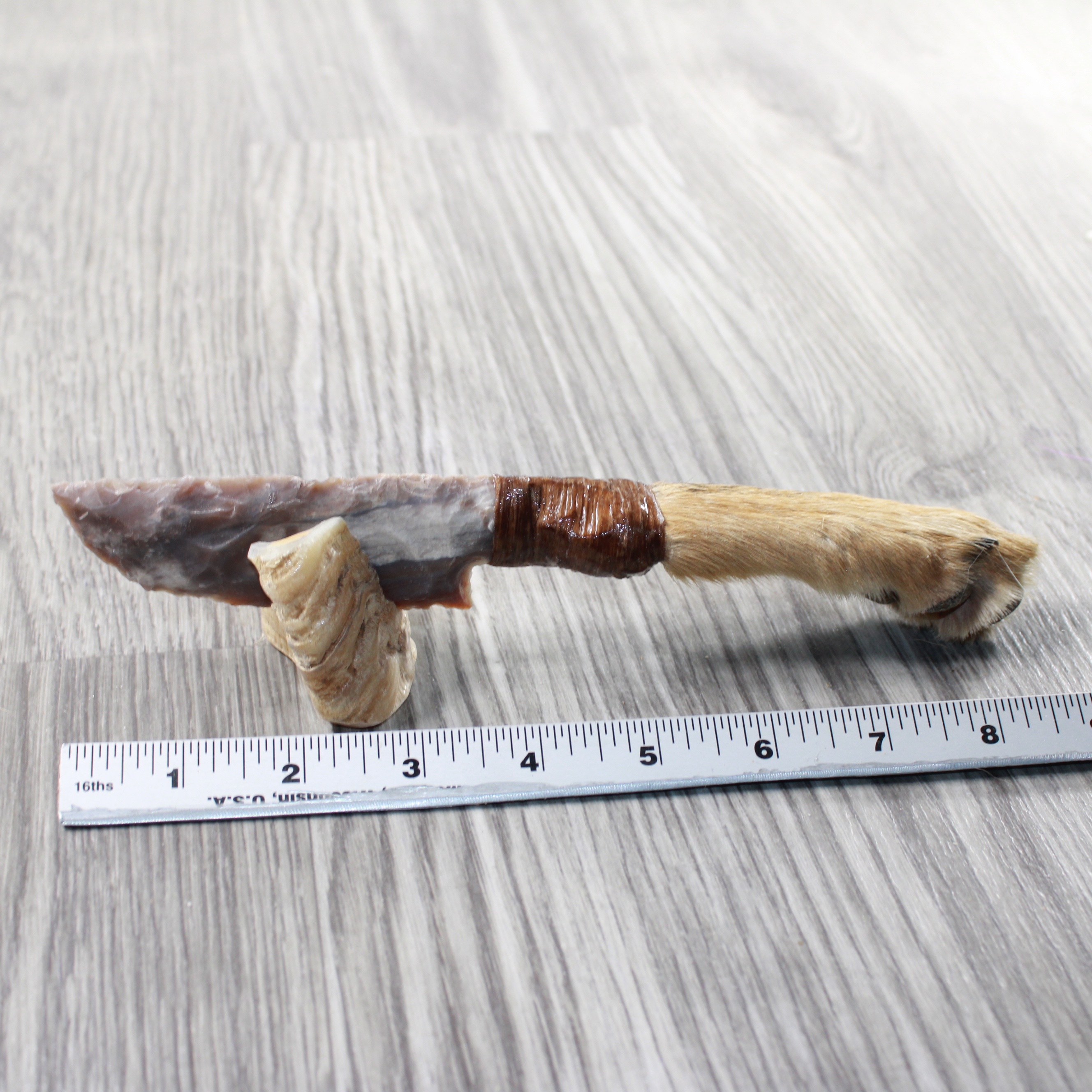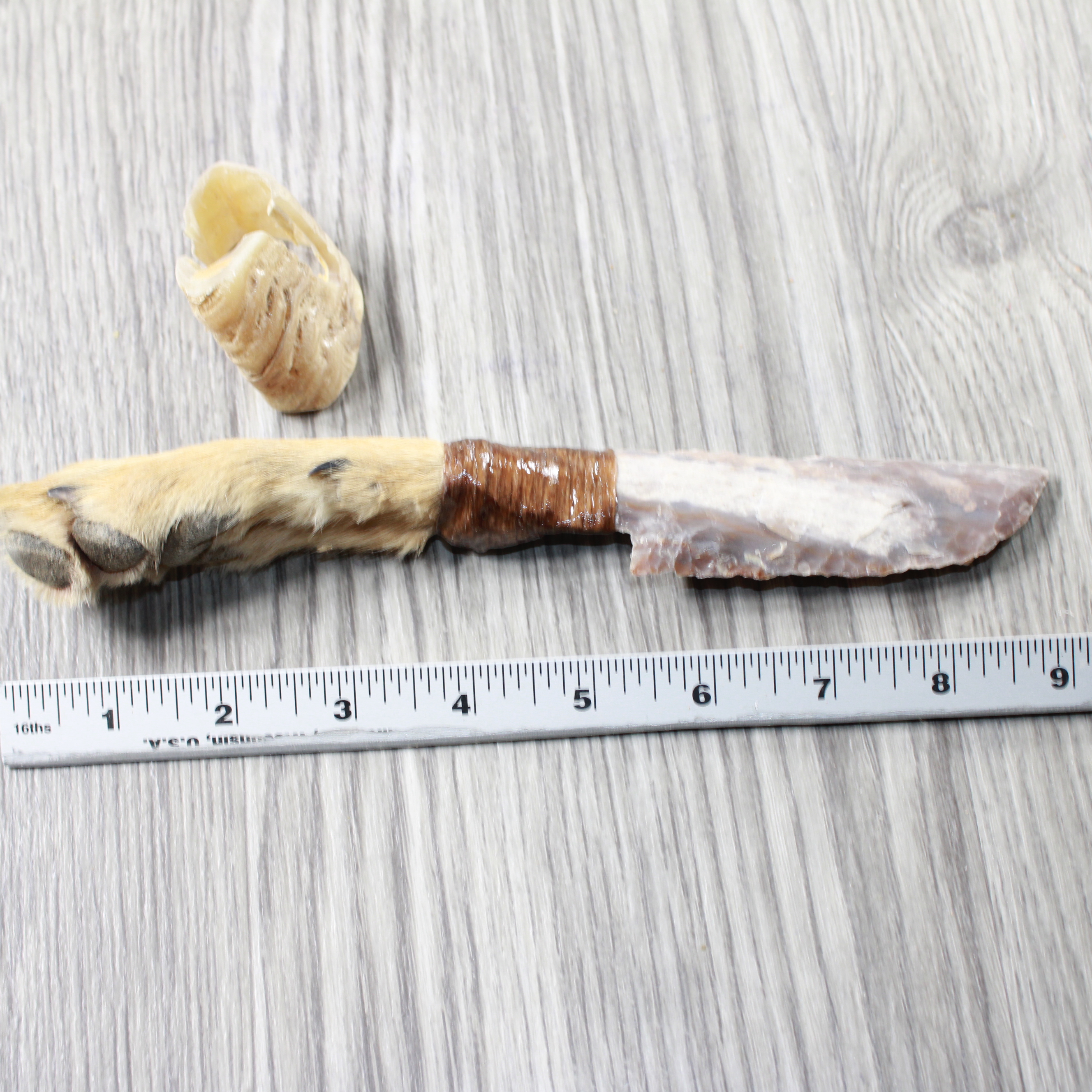 The handle is made from a coyote foot,
