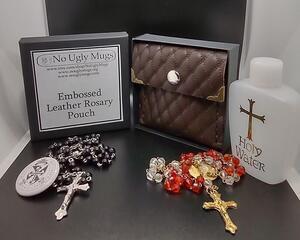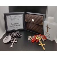 Beautiful rich dark brown Crazy Horse leather Rosary Pouch. (Color darkness may be different from photo.)