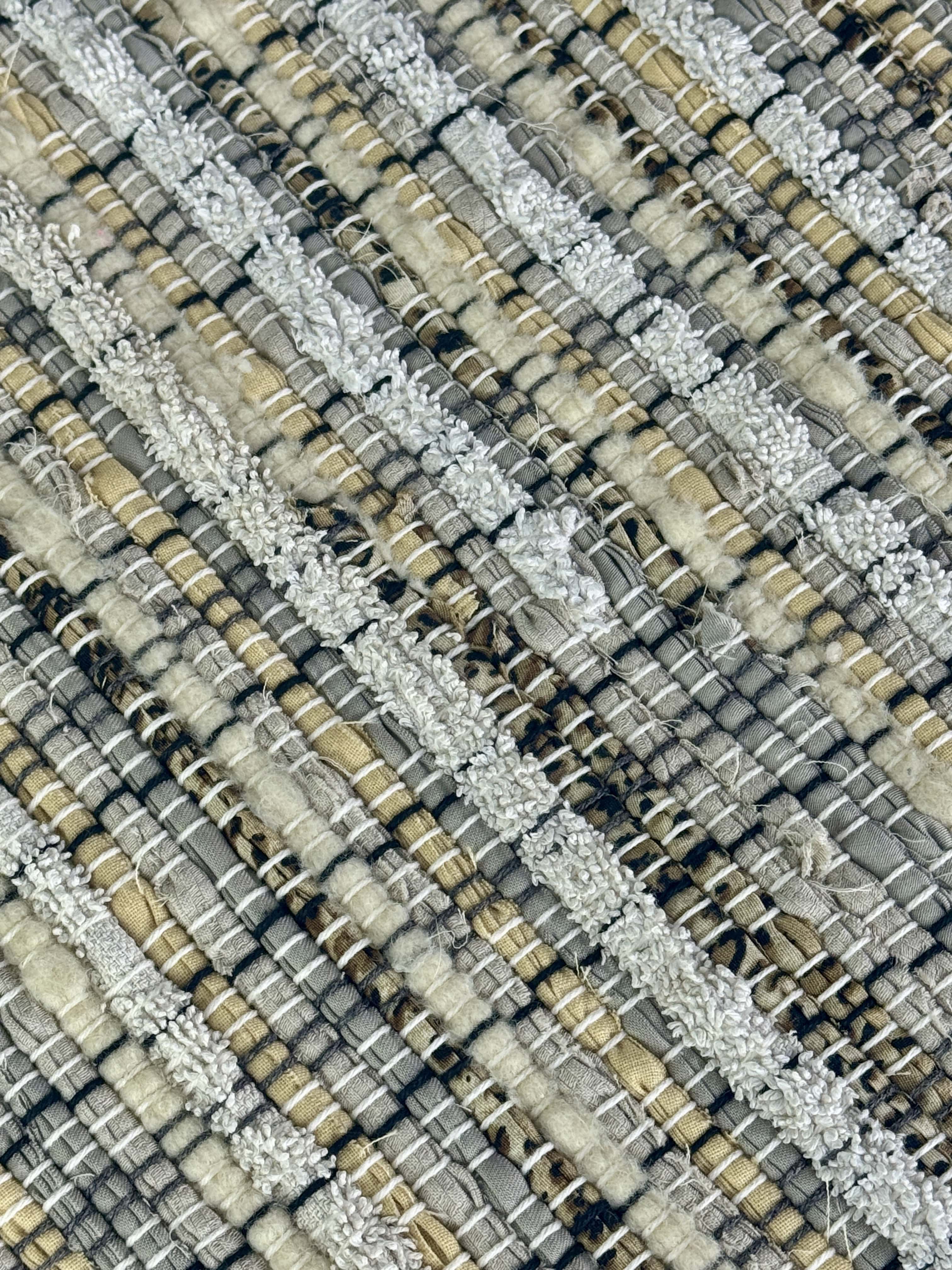 Discover the extraordinary world of recycling with my remarkable rugs. Crafted from once-beloved household textiles, these rugs breathe new life into forgotten fabrics. Each rug is a captivating tapestry of repurposed wonders, blending sweaters, socks, shirts, jeans, bedding, and beyond. Each rug lends its own uniqueness due to the blend of textures and colors.