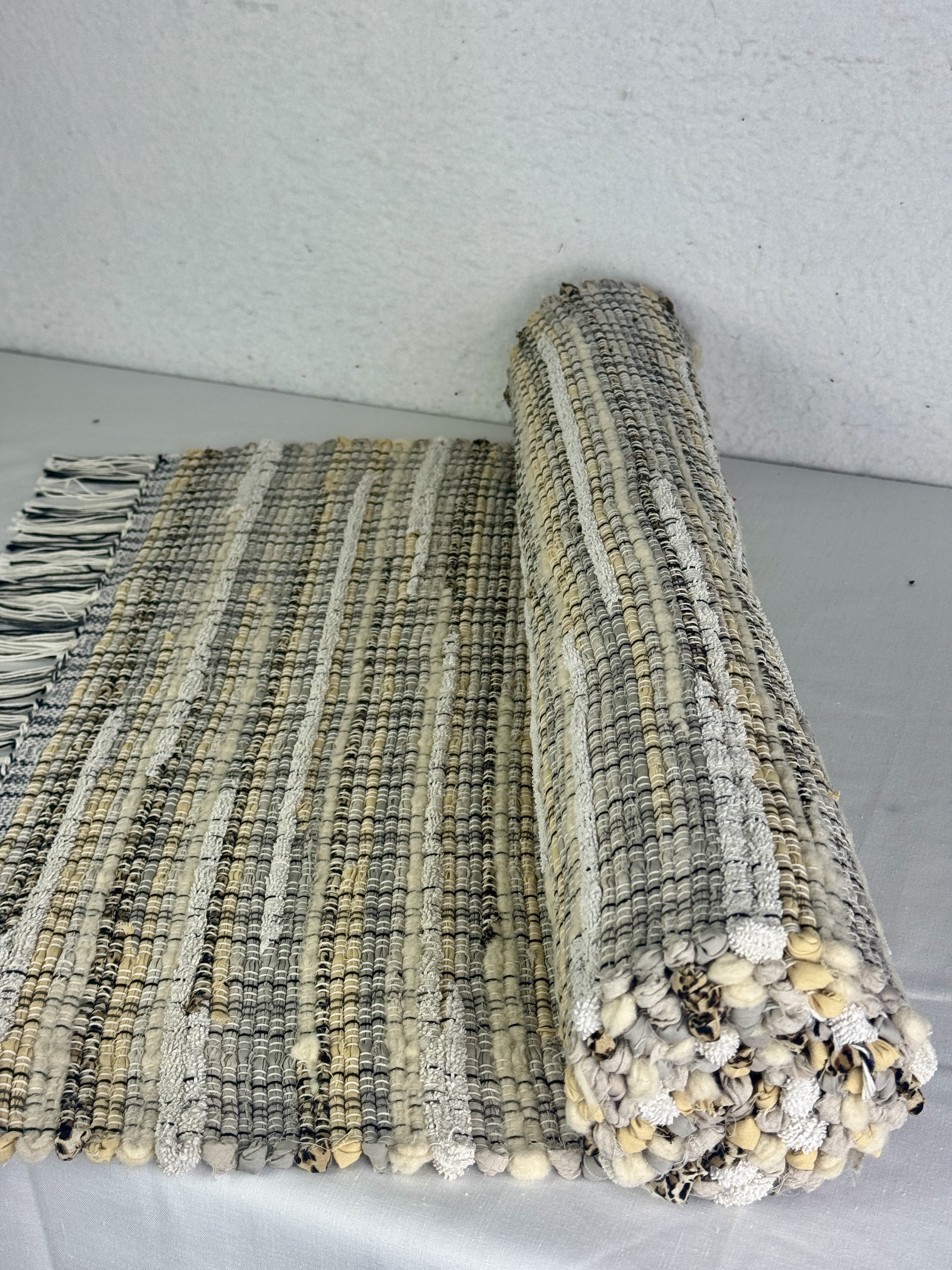 Every rug is meticulously handwoven on my trusty two-harness loom. I pour my passion and attention to detail into each weave, ensuring a quality that transcends trends. The impeccable straight edges and tightly woven strands are testaments to my dedication, while the variety of warp colors allows me to create pieces that complement any aesthetic, from modern minimalism to vintage charm.