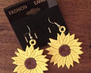 Sunflower Earrings - Embroidered