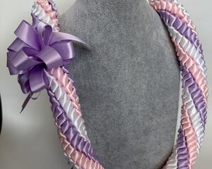 Pink, Lavender, and White Lehua Pepa Ribbon Lei
