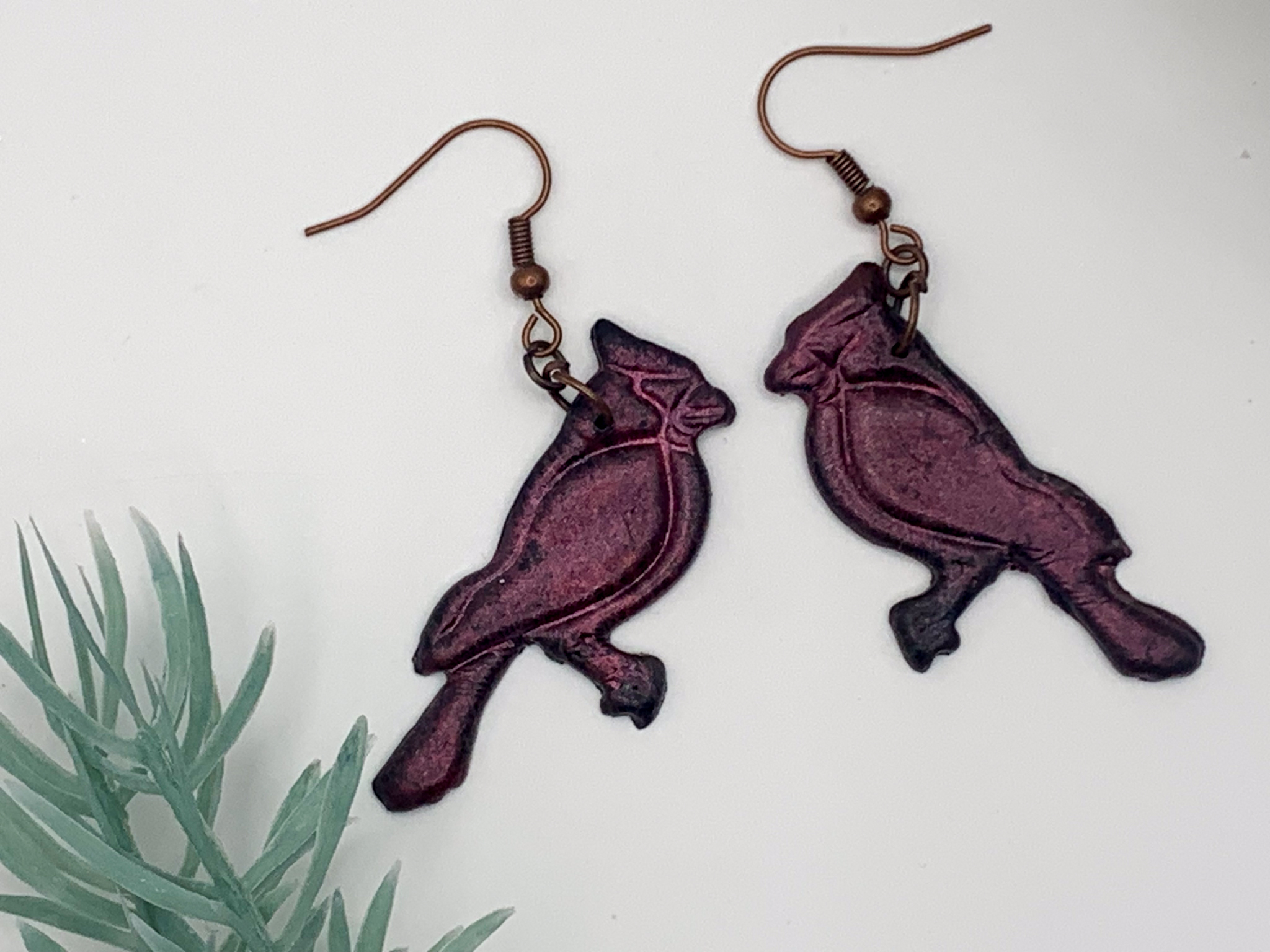 Bring a pop of color to your look! These deep red cardinal earrings are perfect for nature lovers and anyone who enjoys bold, earthy tones.