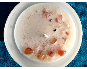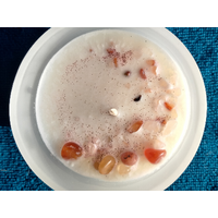 The apple scent evokes the feeling of a sun-kissed orchard, bringing a sense of freshness and rejuvenation to any room. As the candle burns, the garnet and red agate crystals enhance the atmosphere with their grounding and stabilizing properties—garnet promotes vitality, passion, and energy, while red agate encourages strength, courage, and emotional balance. Together, they create a harmonious space that nurtures both body and mind.