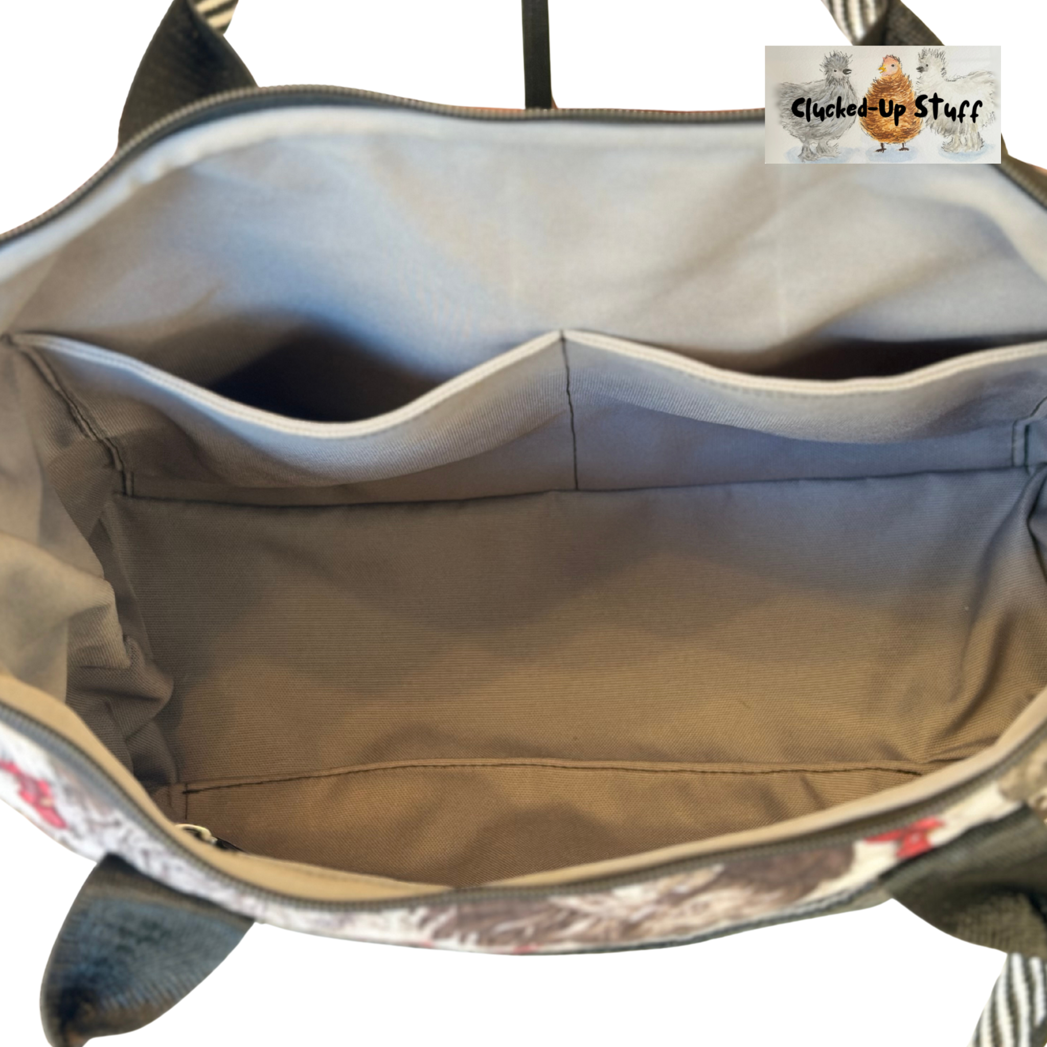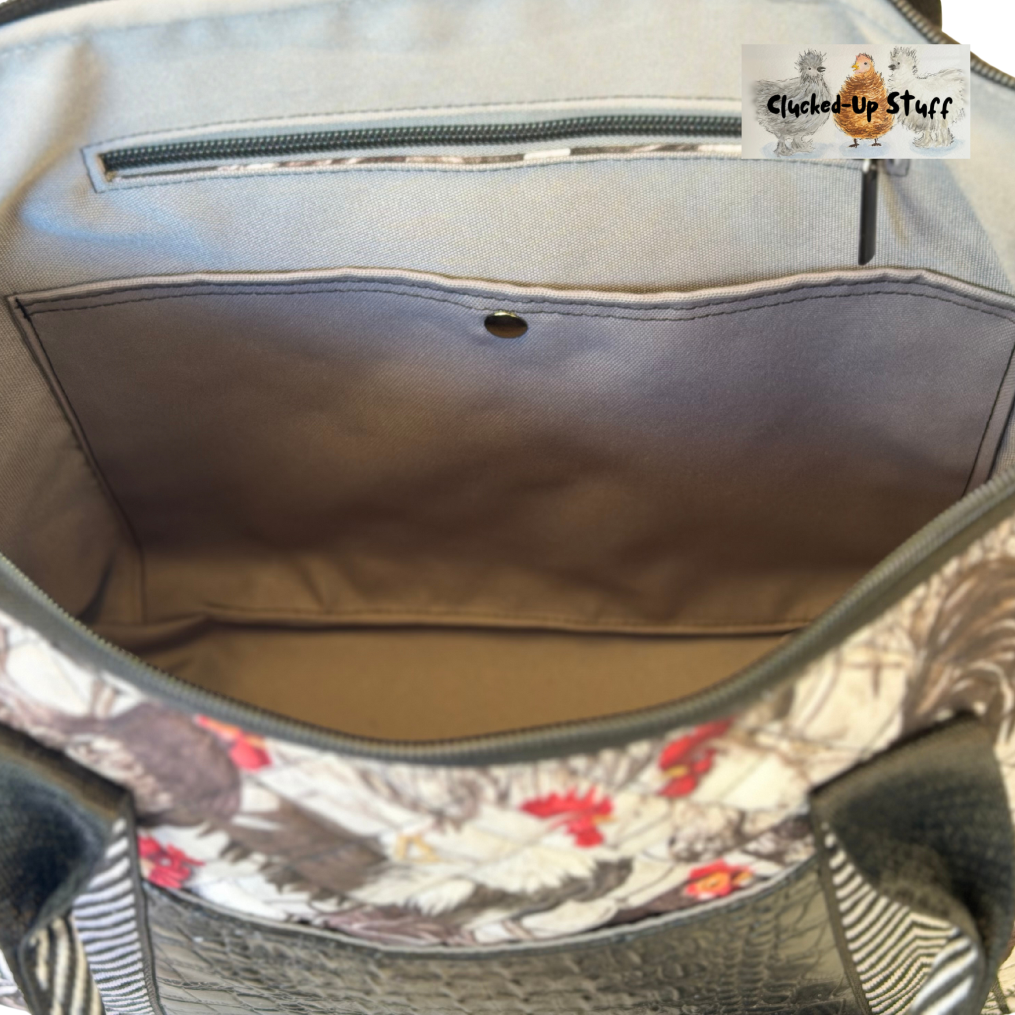 I spend a significant amount of time searching for unique, beautiful fabrics that would hopefully appeal to both chicken enthusiasts, and those who just appreciate a well-made product that just happens to have chickens on it. I'm always looking for new ways to use the fabrics I find. Most of the items I create are one-of-a-kind. No one else will Cluck It Up like you!