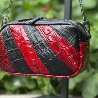 The outer is made from quilted cotton fabric, with a crocodile faux leather slip pocket on each side.
