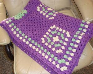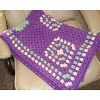 Afghan, Baby Afghan. Wrap your favorite little baby in this perfect afghan worked in deep purple with white stripes, white fringe on one end and purple fringe on the other end. Perfect for baby to cover up with and keep out the cold. Measures 31 inches by 31 inches (78.74 cm sq) without fringe. Perfect to throw over her when she falls asleep unexpectedly on the sofa or floor and you don't want to take a chance on waking her. Machine washable and dryable. 100% acrylic. FREE SHIPPING.
