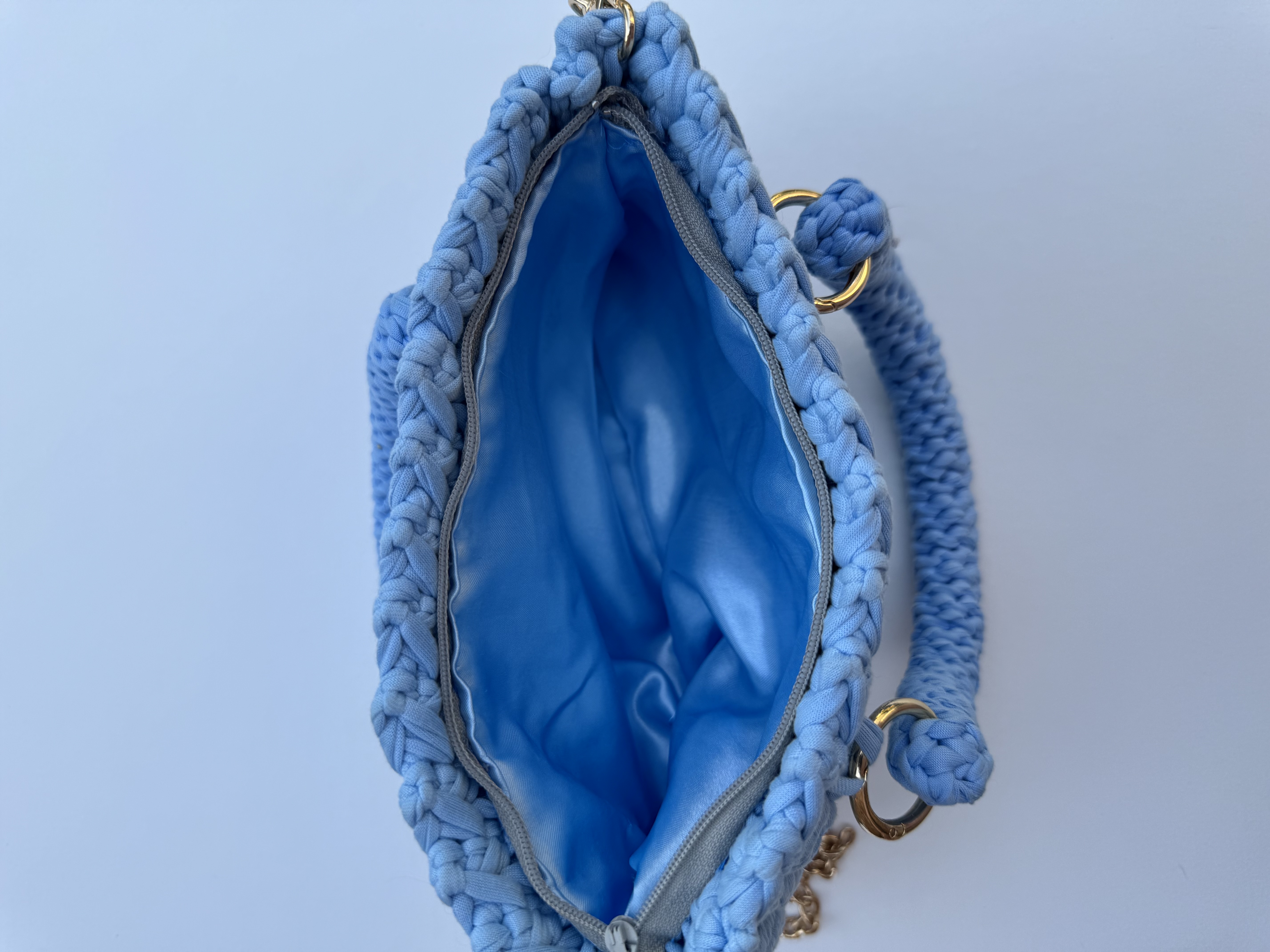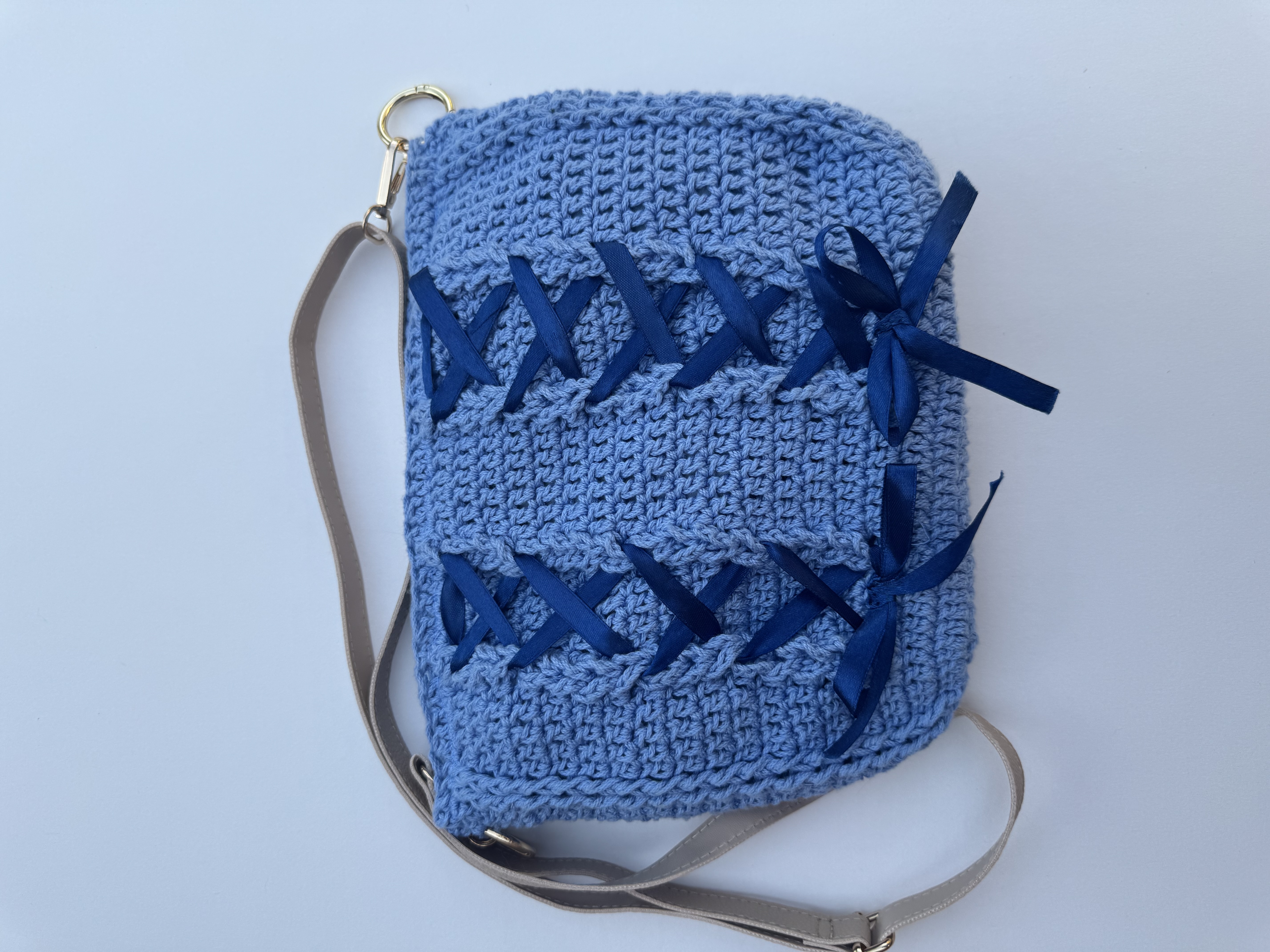 Charming, feminine and handmade with love, the Blue Ribbon Crochet Crossbody Bag is the perfect mix of elegance and everyday practicality.