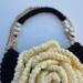 A 15" hand crocheted top handle embellished with pearl beads for a graceful touch