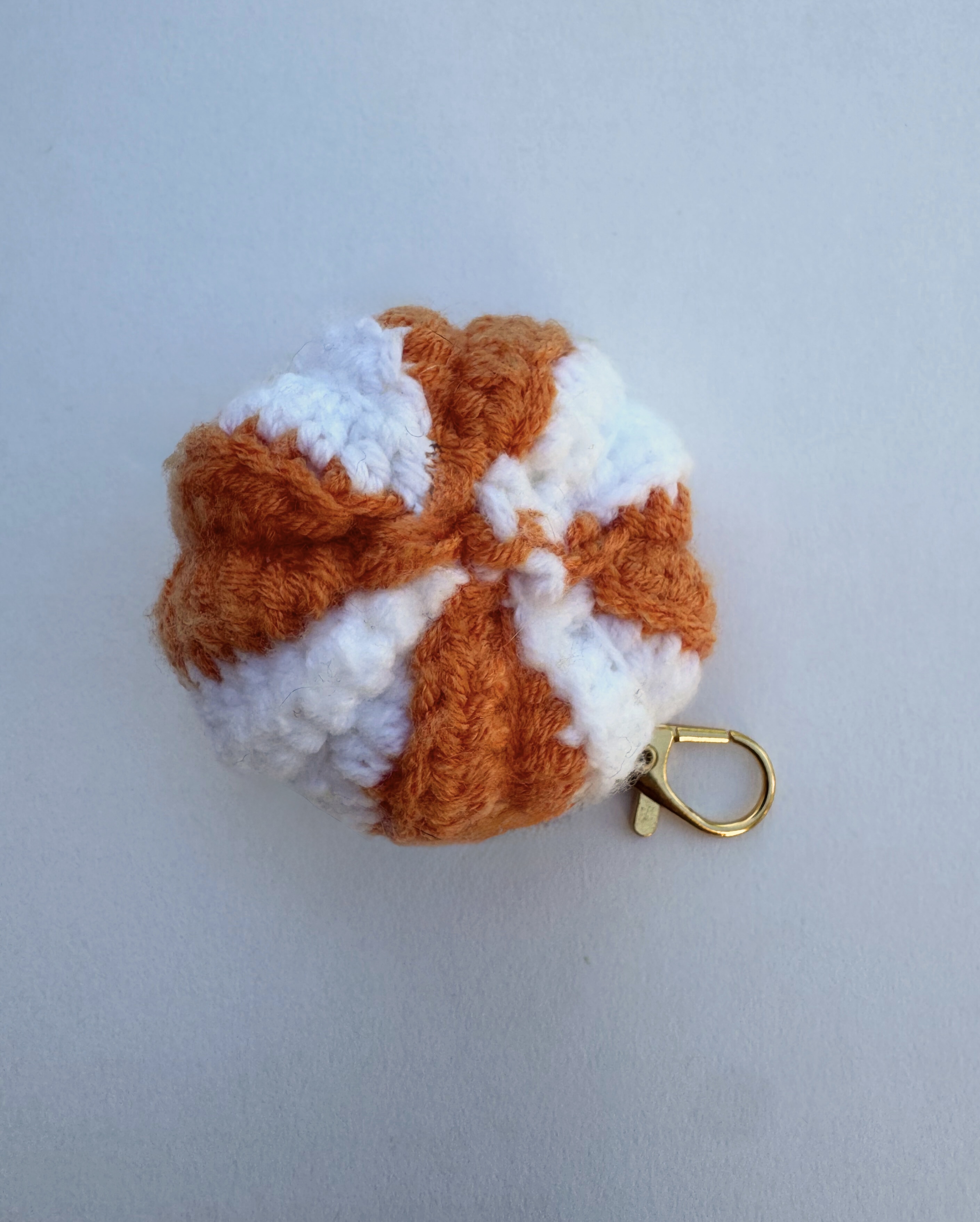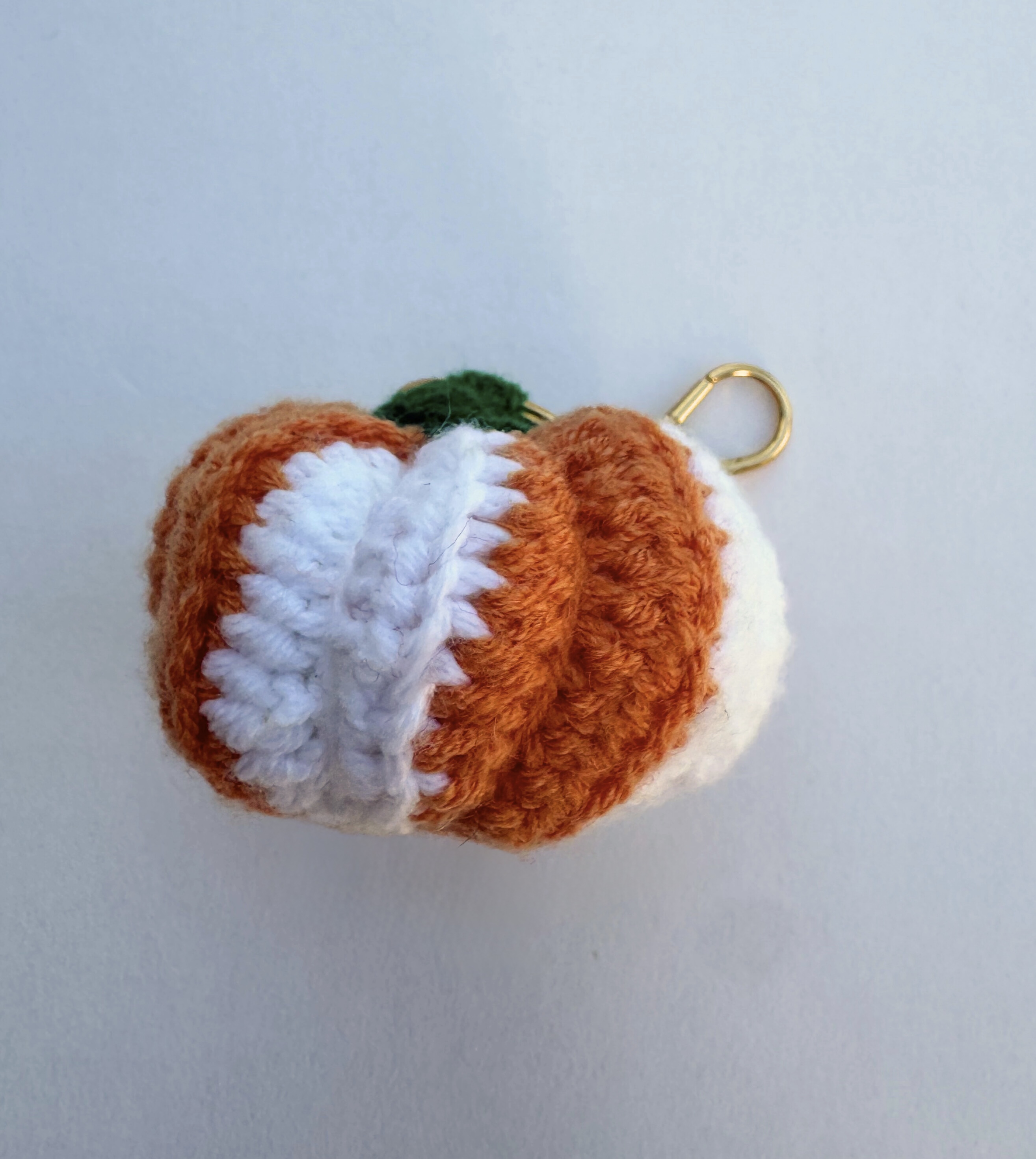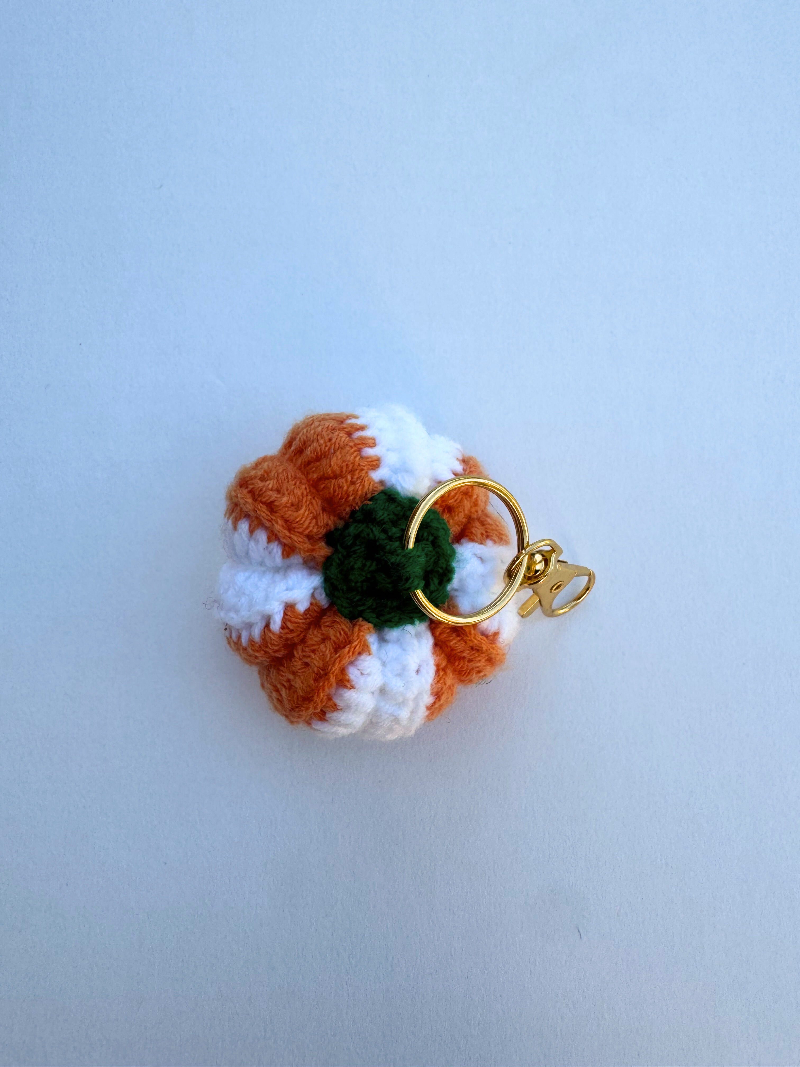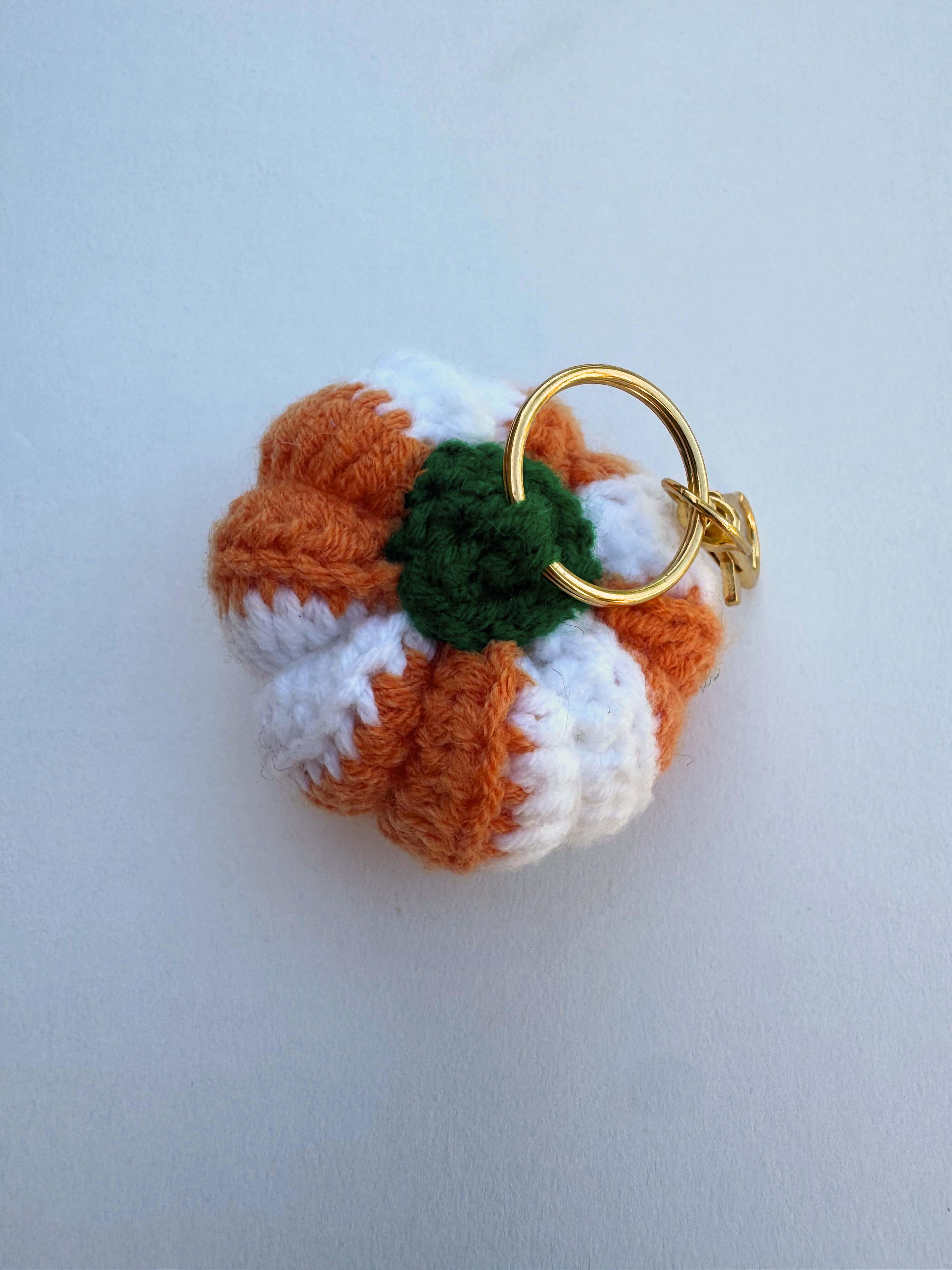 Add a touch of cozy fall charm to your keys, bags, or backpacks with this handmade crochet pumpkin keychain. Featuring warm orange and crisp white stripes with a deep green top, this soft and lightweight accessory captures the spirit of autumn in a playful, portable desing. Perfect for seasonal flair, gift giving, or simply keychain is a delightful way to carry a bit of handmade warmth everywhere you go.