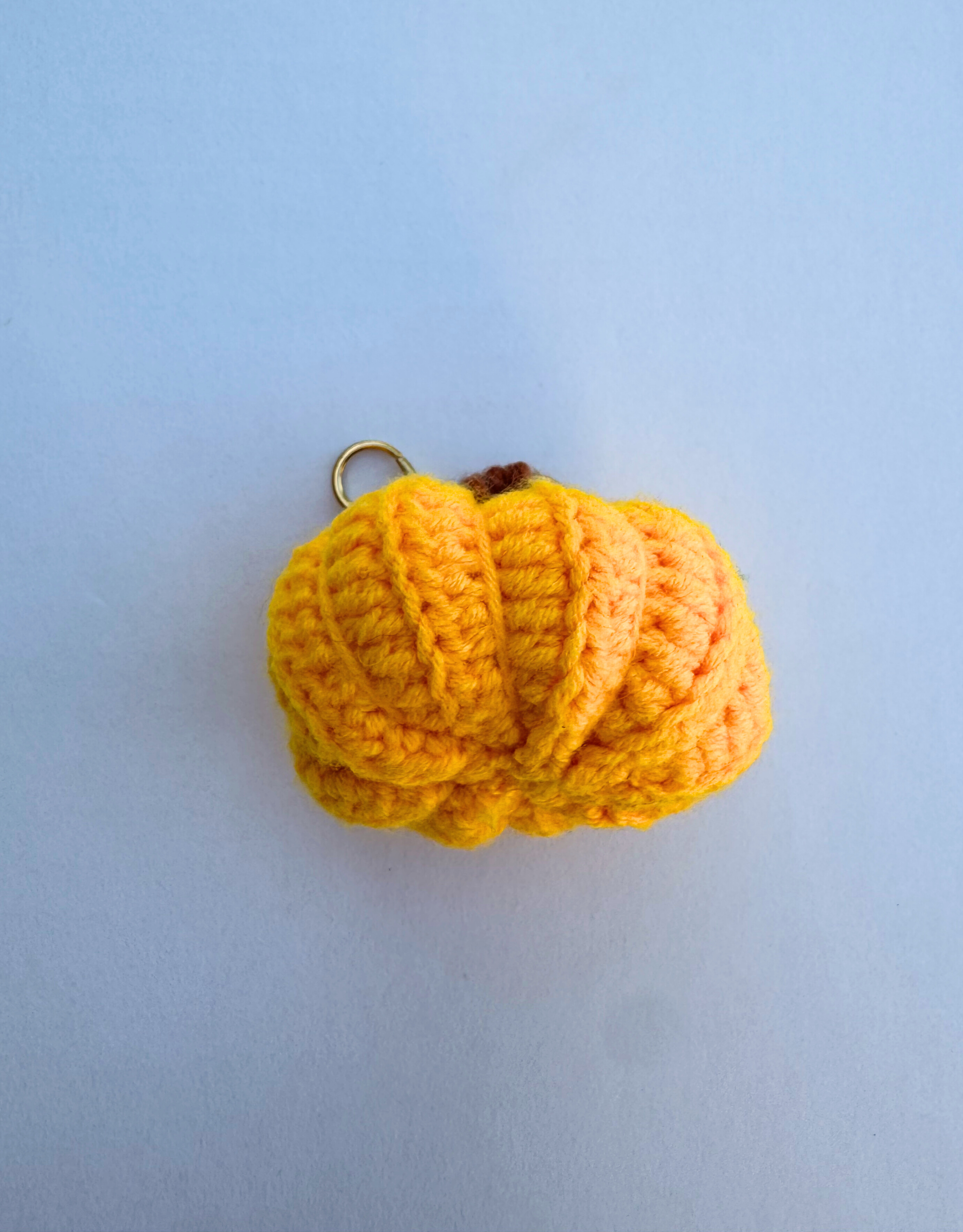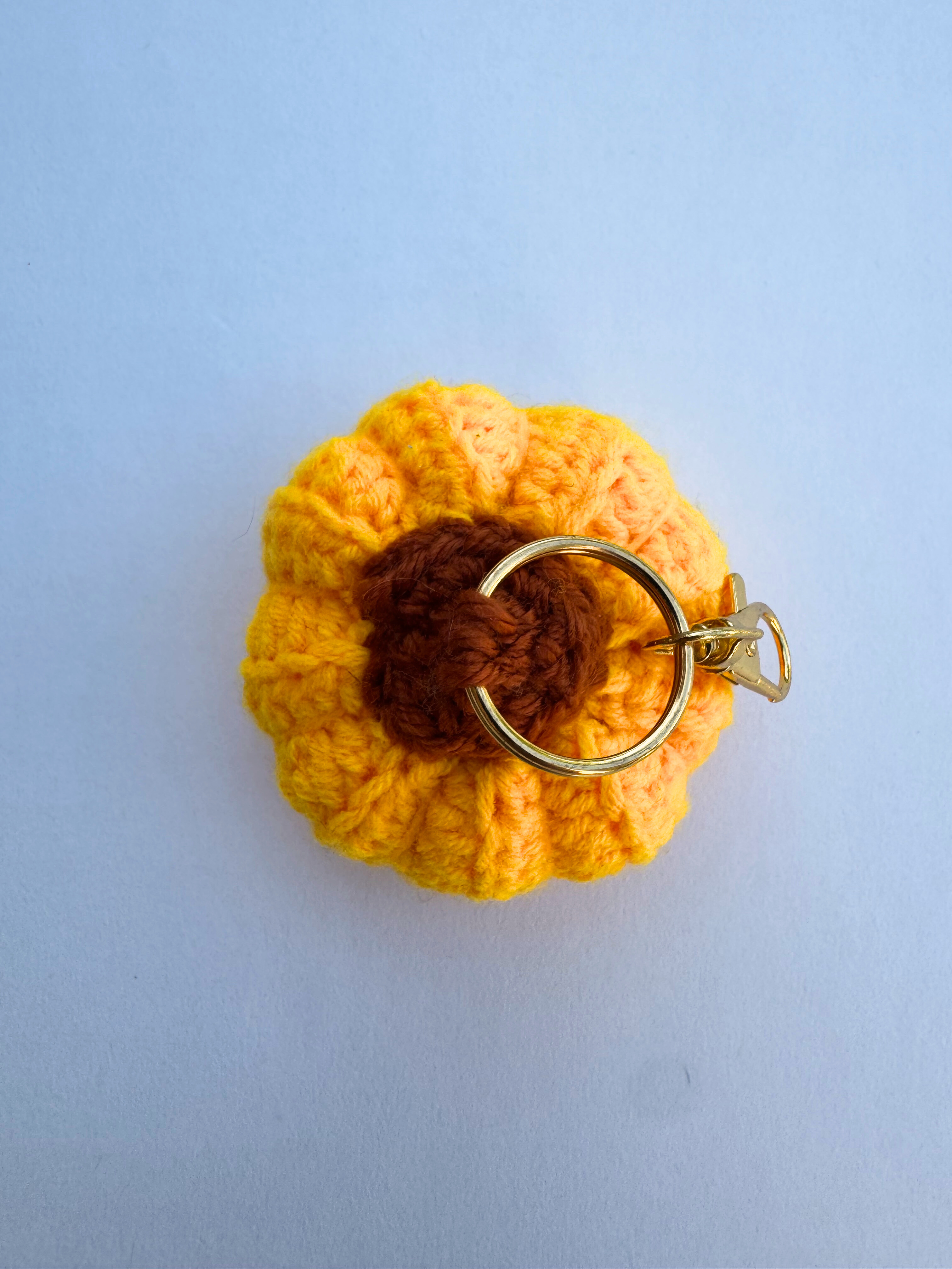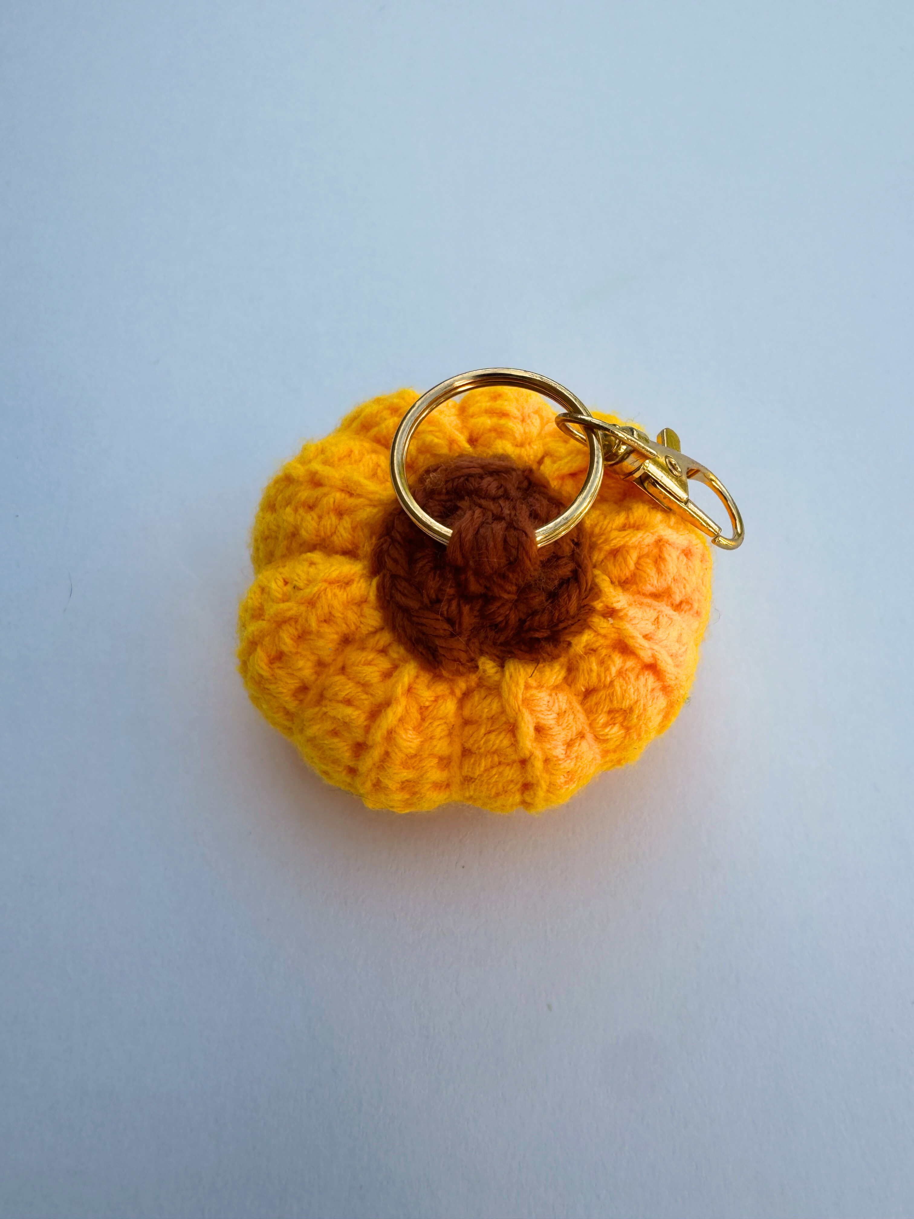 Add a touch of cozy autumn charm to your keys, bag, or backpack with this adorable crochet pumpkin keychain. Crafted with bright golden yellow yarn and a warm brown stem, this soft and lightweight accessory is perfect for fall lovers or as a cute seasonal gift. The sturdy gold-tone keyring and clasp make it easy to attach anywhere, keeping your essentials stylishly organized.