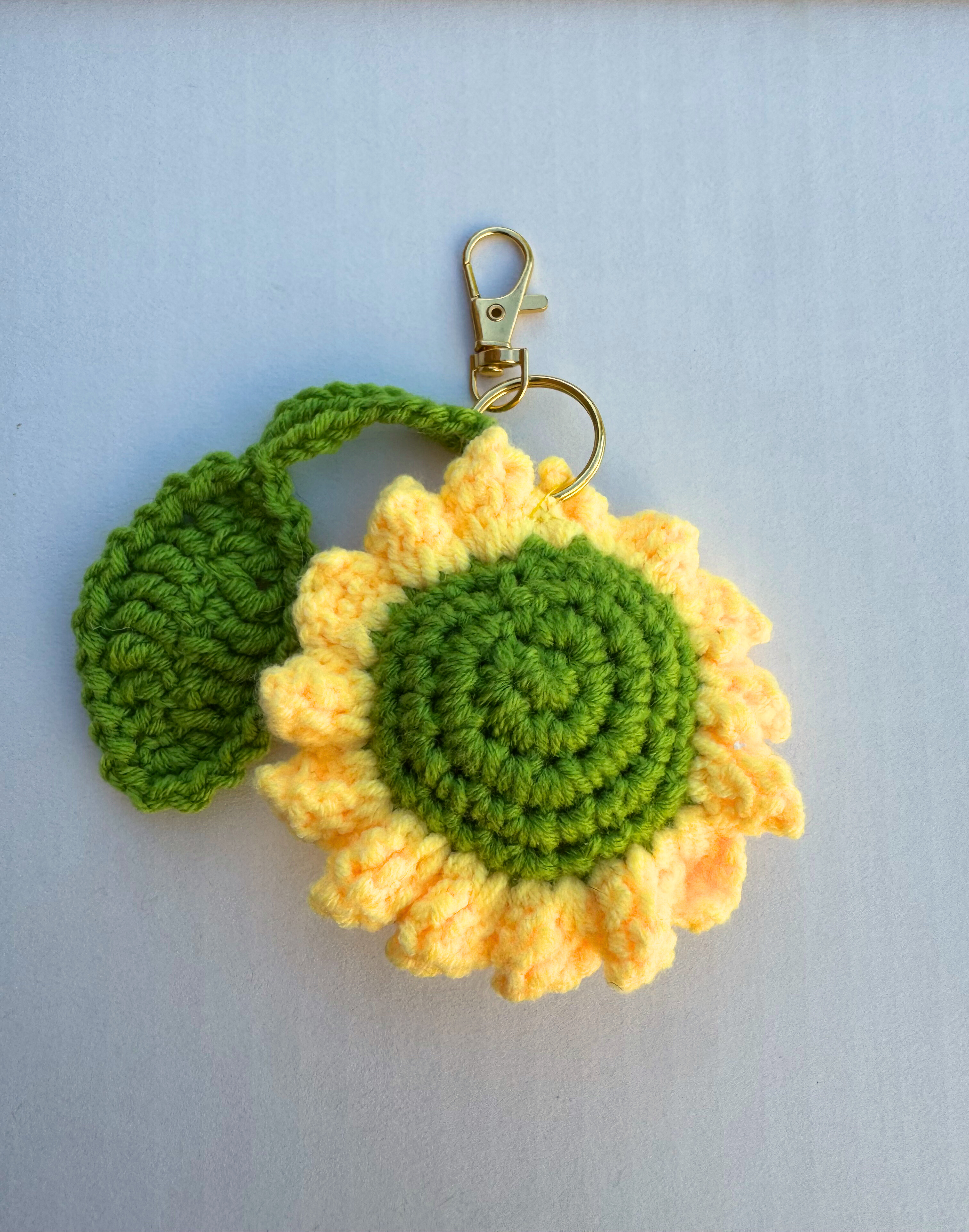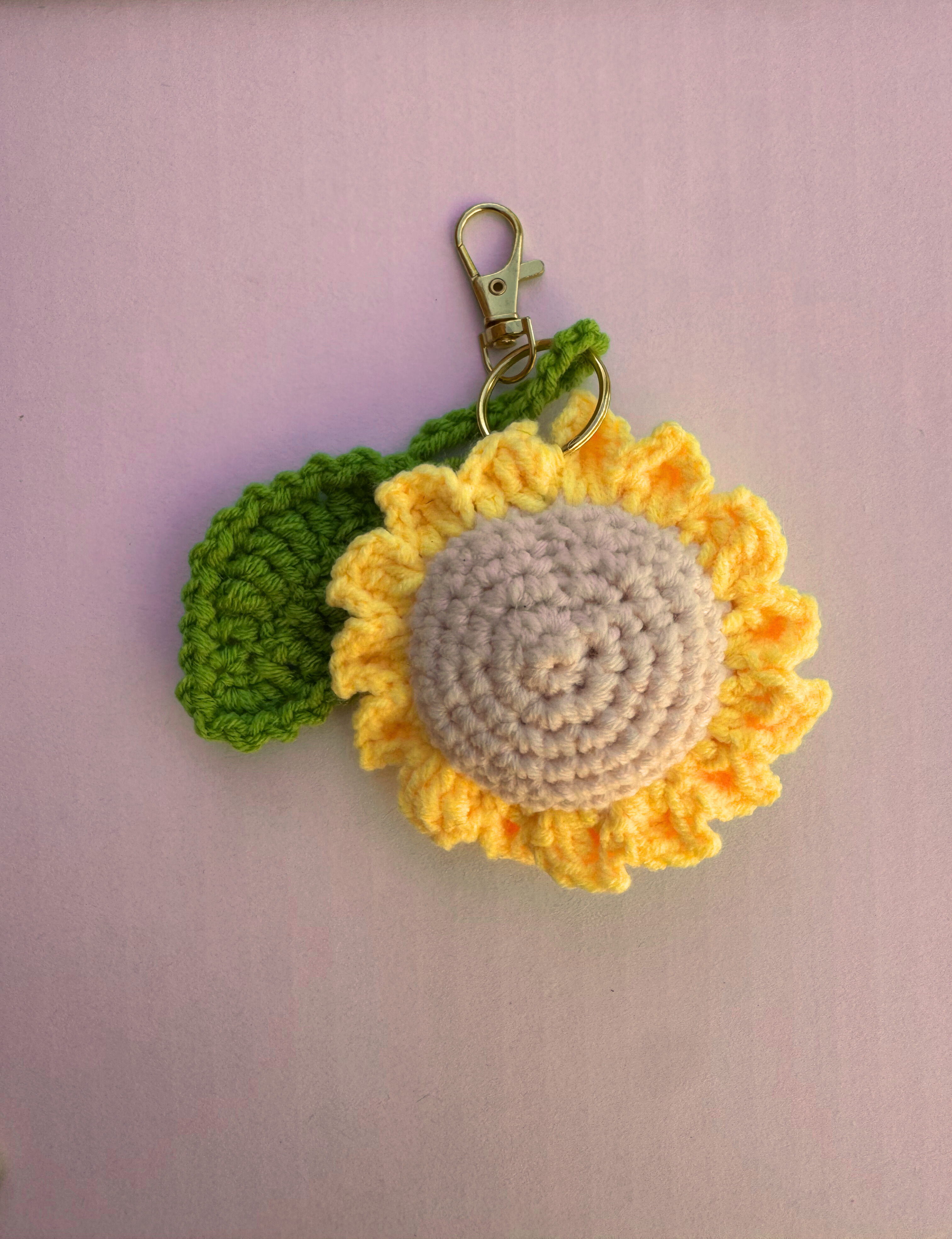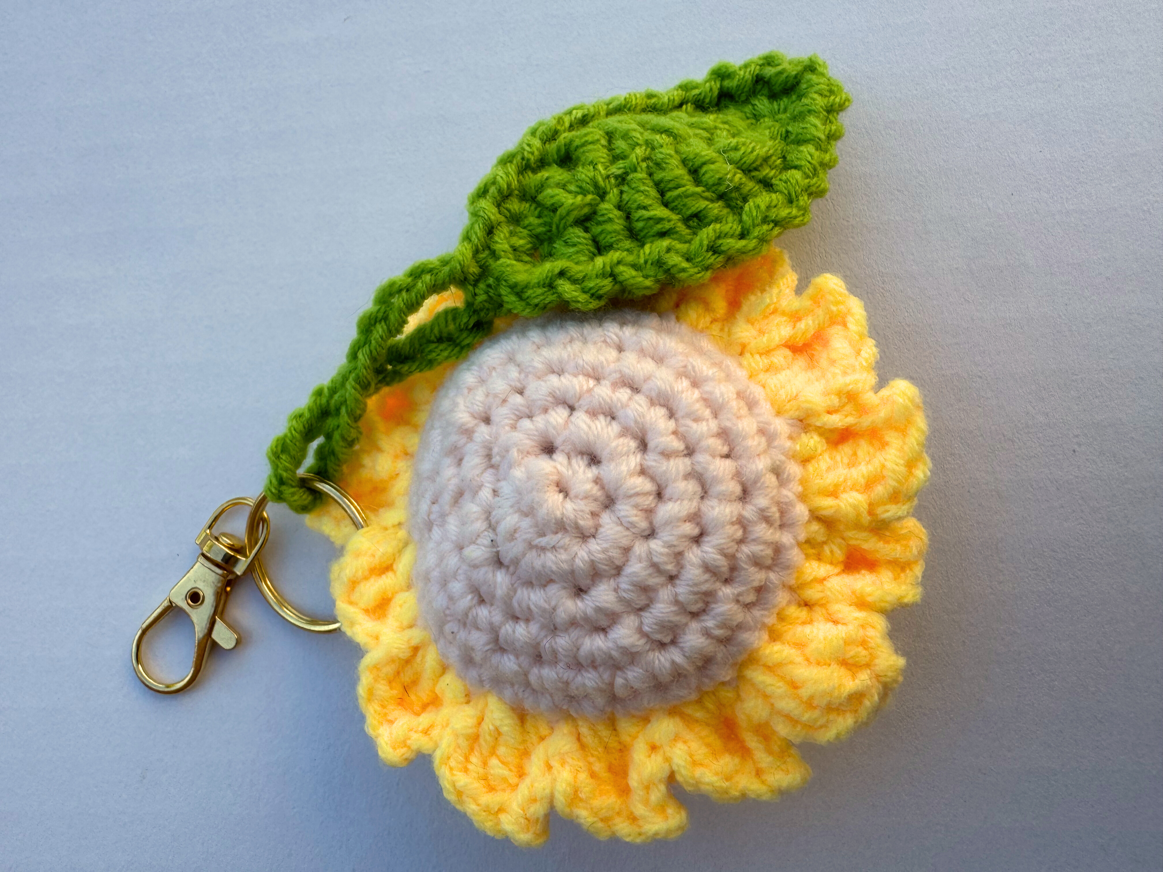 Brighten your day with his handmade sunflower crochet keychain, the perfect touch of sunshine for your keys, purse, or backpack.
