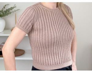 This drop shoulder textured crochet sweater uses a textured stitch resembling fisherman-style ribbed knit stitches to add extra texture to a classic crew-neck silhouette.