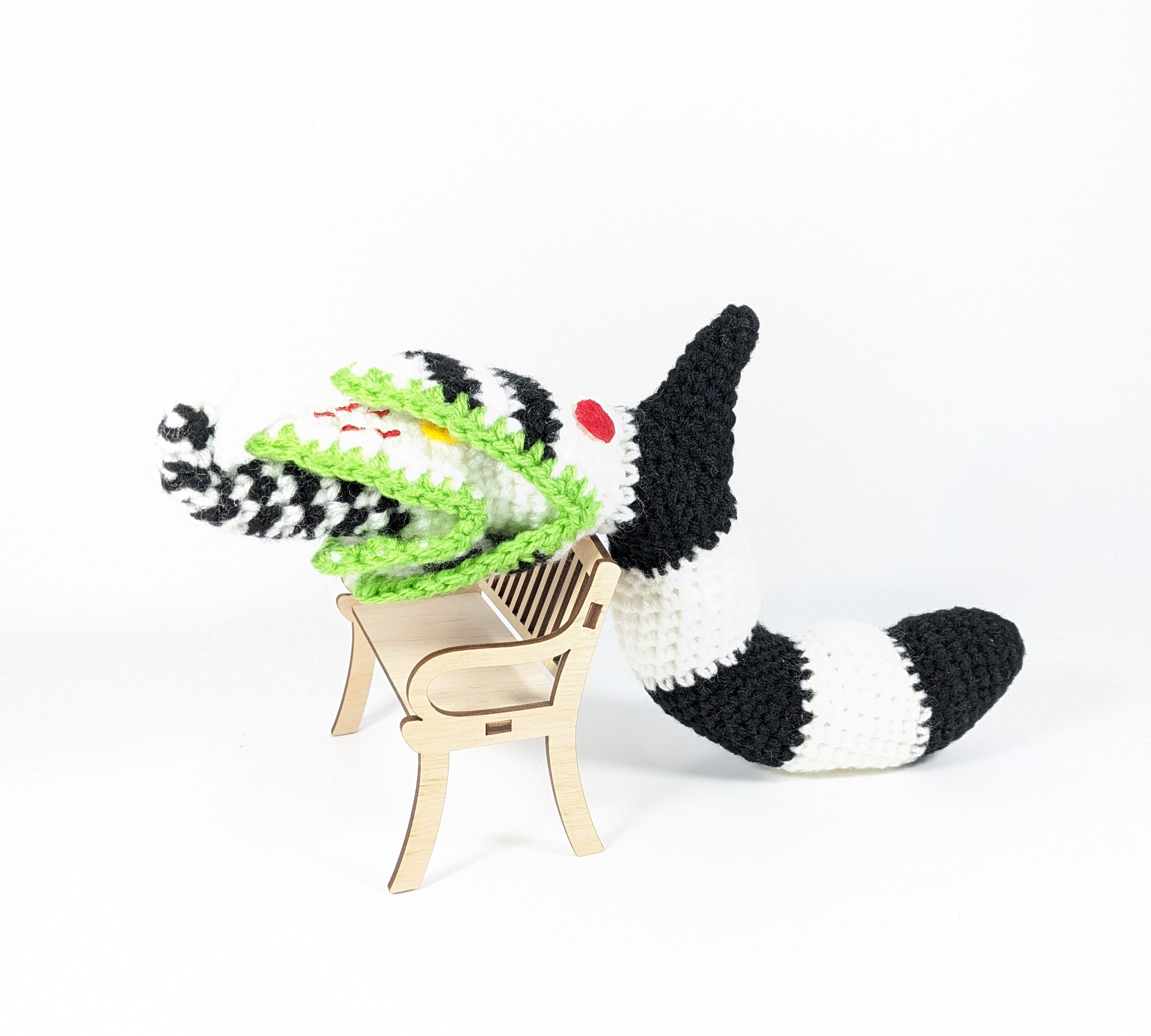 Crochet Sand-snake Halloween Decoration. You will love this awesome Sand-snake is a crochet version from the movie Beetlejuice. Also his complete sizes is around 11 1/2 inches long. You can get the Beetlejuice figure and Lydia figure to complete your set. Also you can find a great selection of other Halloween or Horror movie items in my shop.