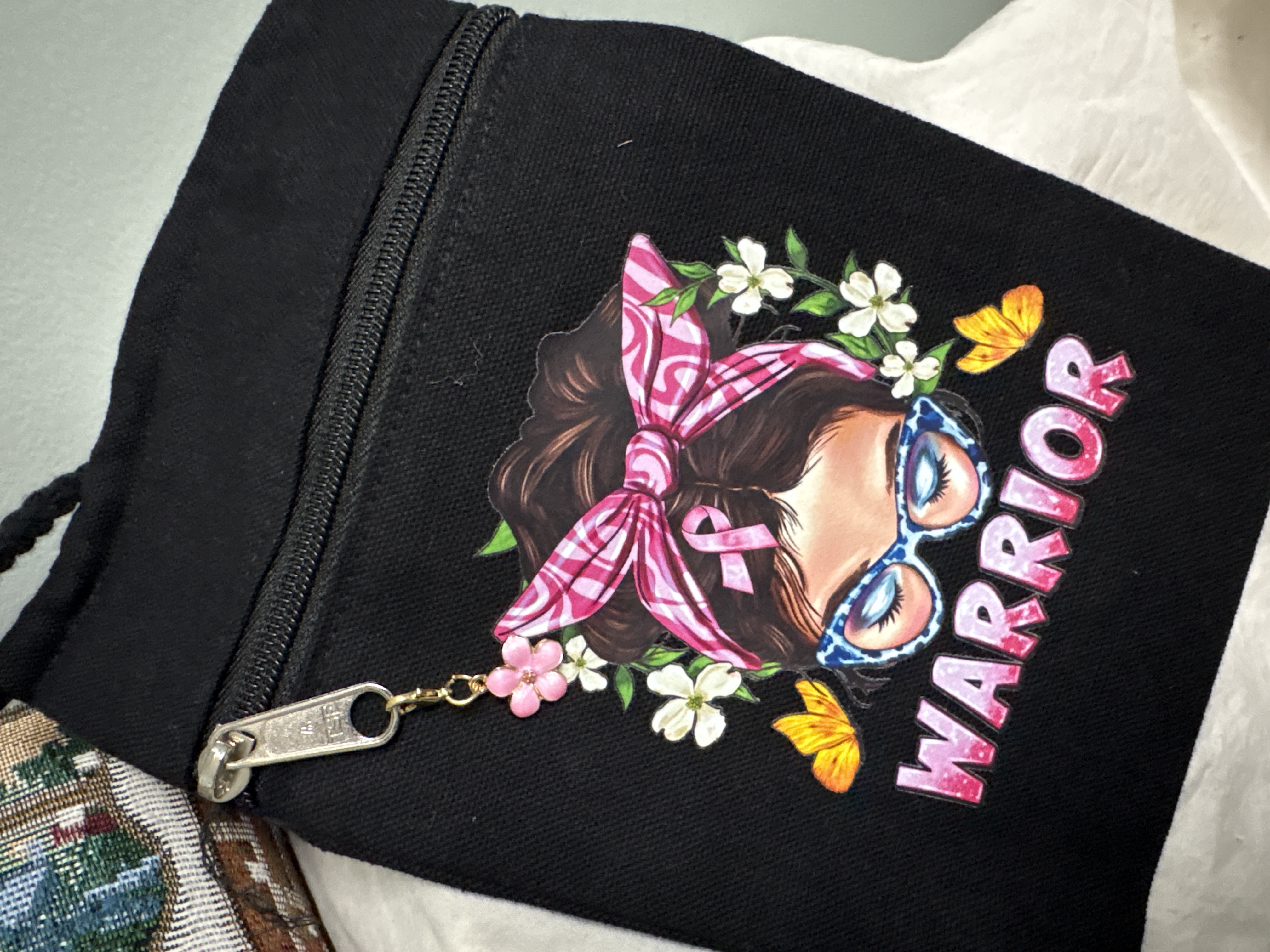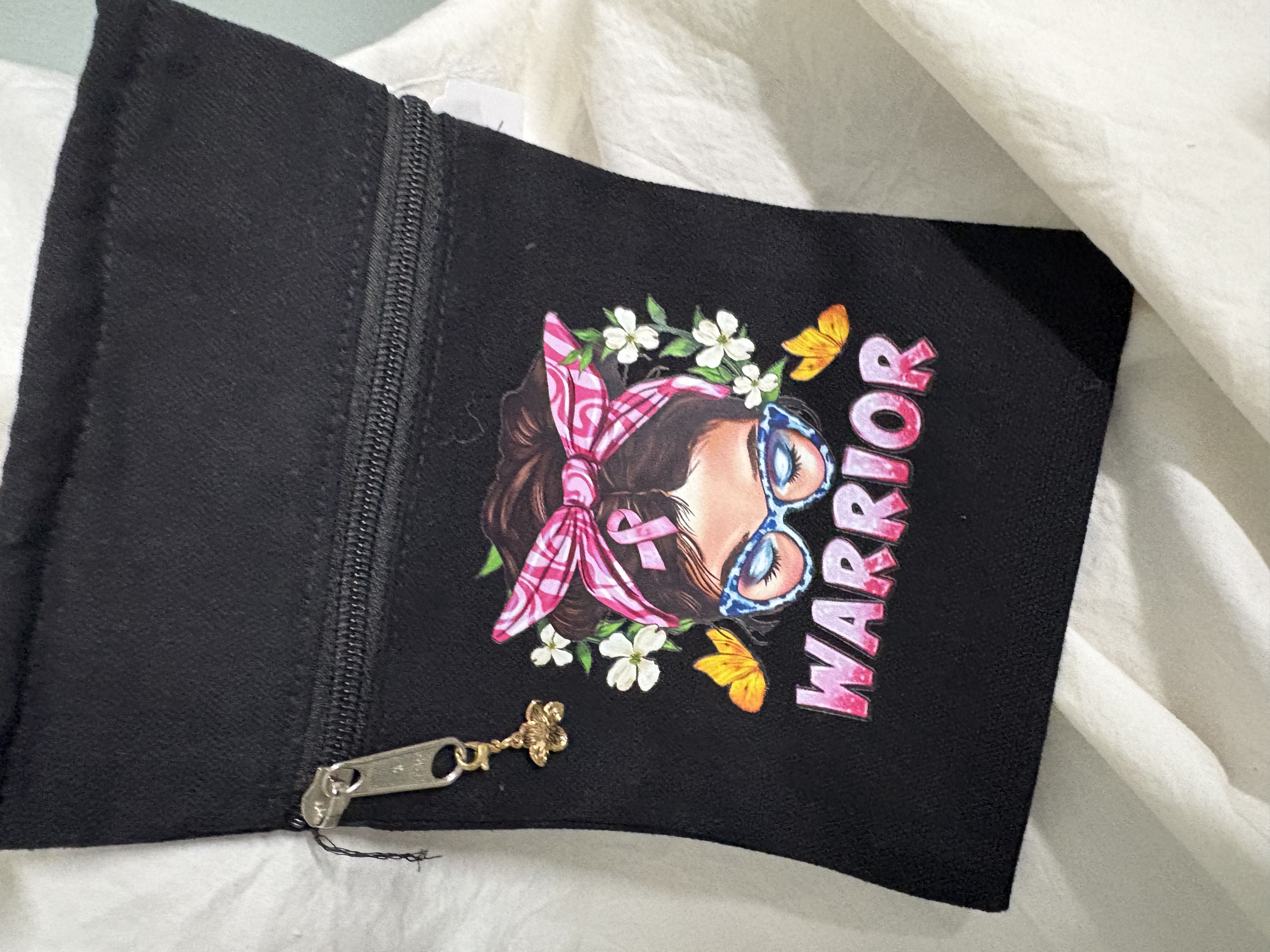 Warrior crossbody canvas fabric $” x 9” zipper front pocket with decorative zipper pull
