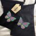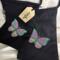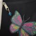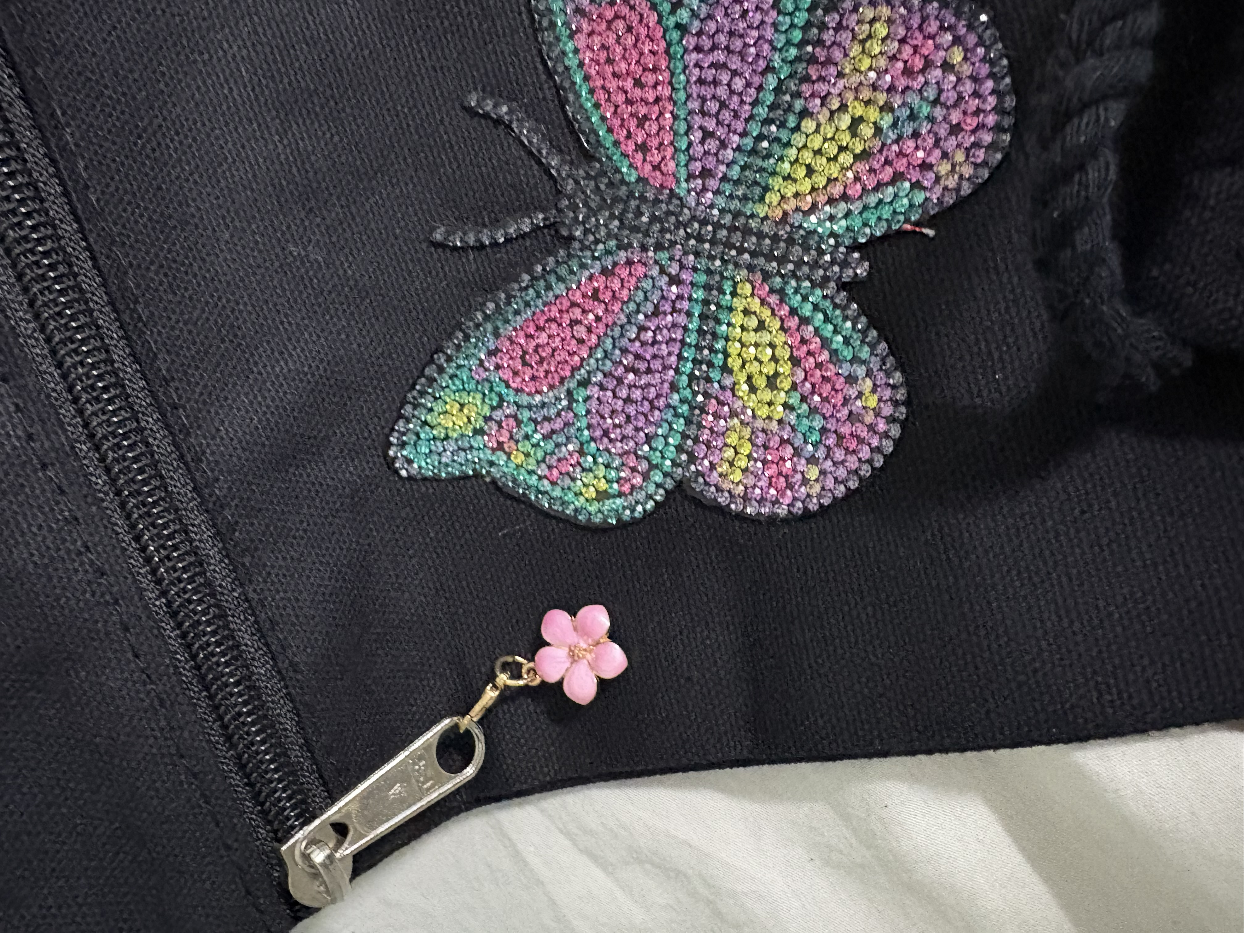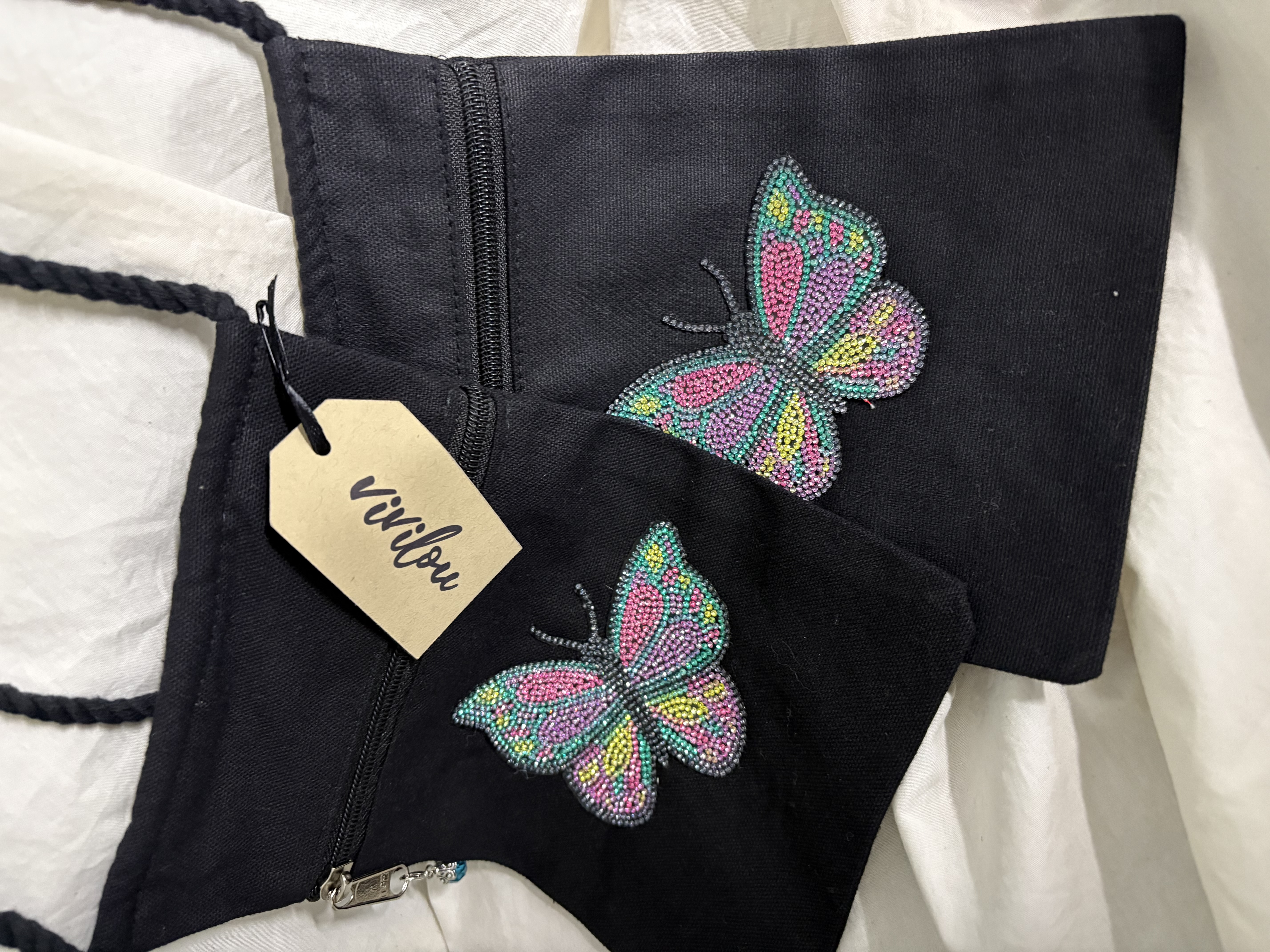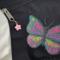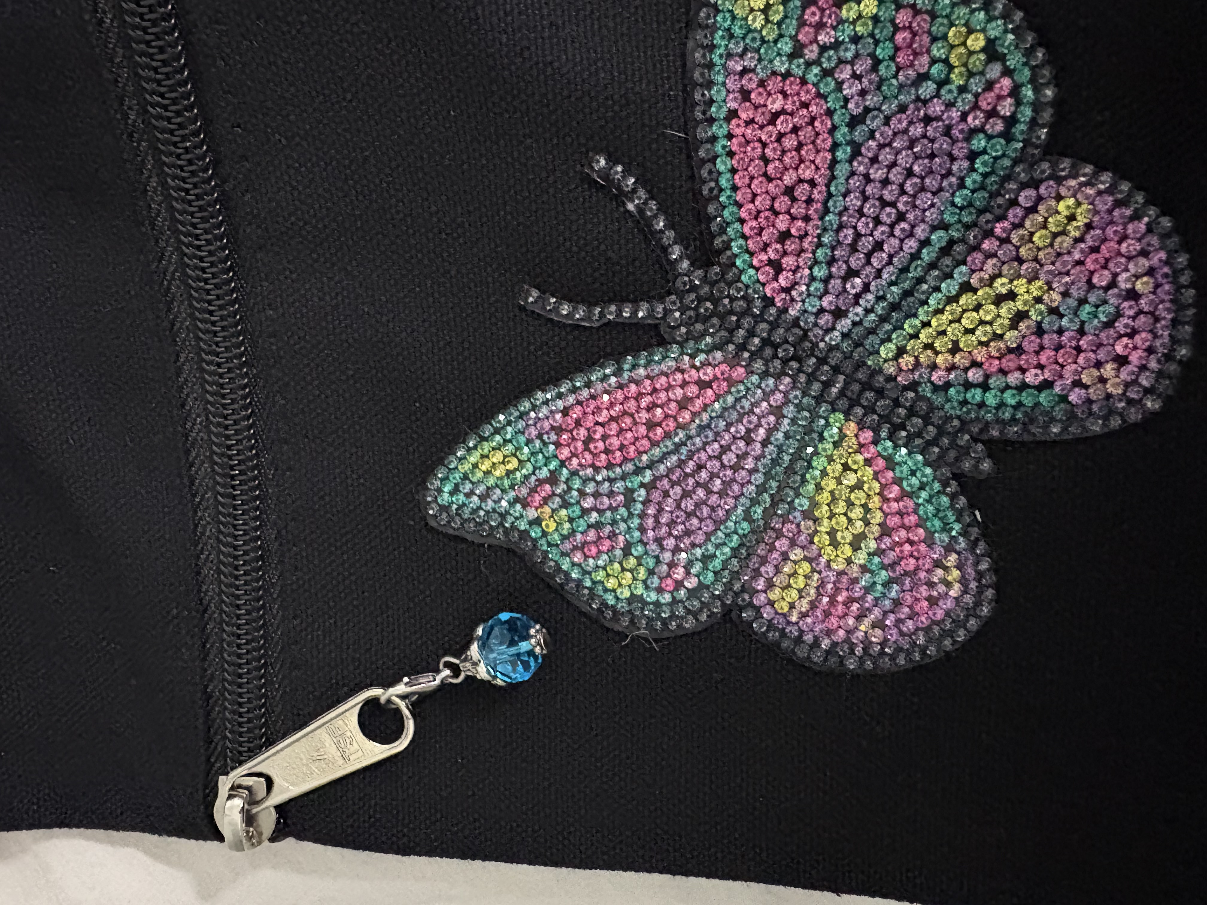 Crossbody black canvas with a rhinestone butterfly 6” x 9” long strap with front zipper pocket and decorative zipper pull