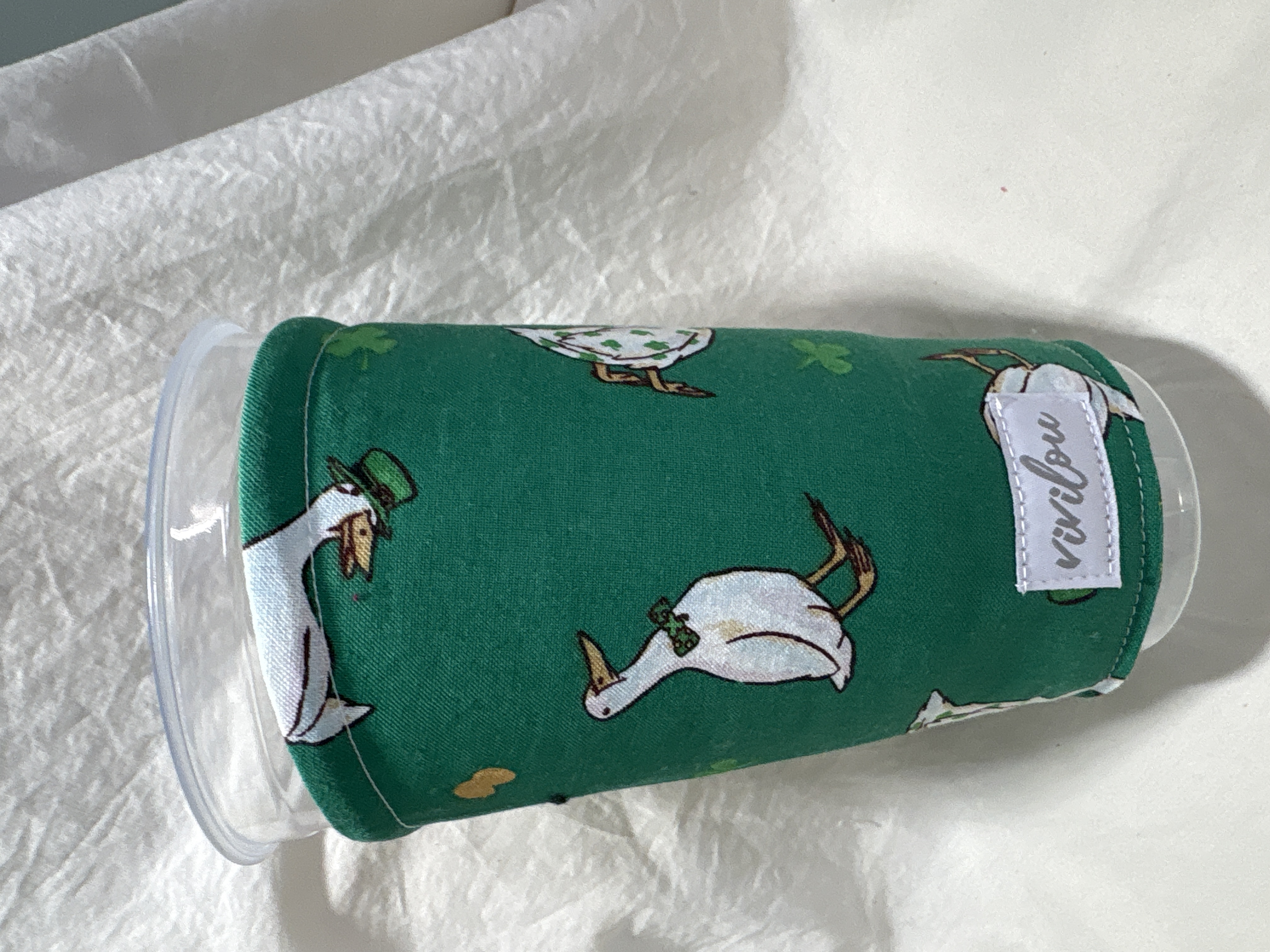 It was 6 years ago when Vivilou came into play with cup cozy’s for your hot and cold drinks. The name came to be with my moms name Vivian and my middle name Louise(May she rip and be smiling down at me).  Vivilou was born!!!  I try to pick the cutest of fabrics and bring it to my customers several times of the year.  I will also throw in things like burp cloths, baby bids, toothfairy pillows or whatever else I might want to get my hands on.