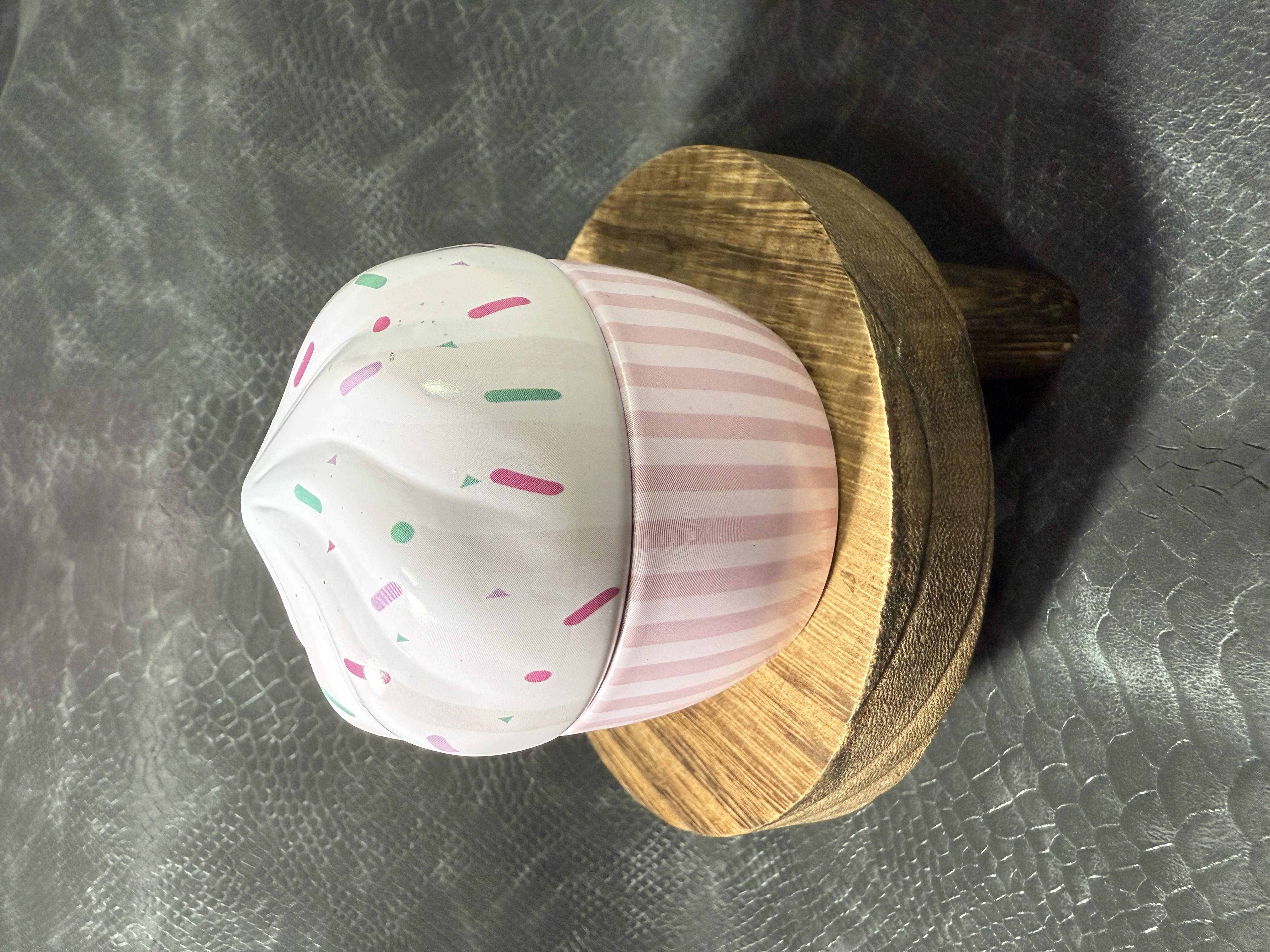 This small cupcake-shaped tin holds a candle that, once lit, releases a comforting aroma of freshly baked cupcakes, soothing both mind and body.