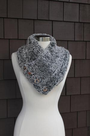 Hand Knitted Gray Cowl, Side Split Hem Winter Neck Warmer