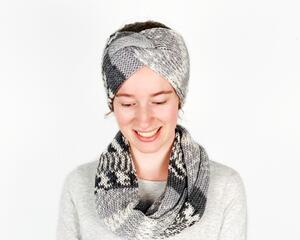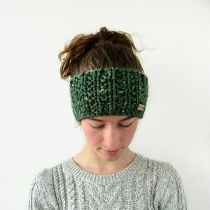 Chunky Knit Ear Warmer - Green Tweed Knitted Headband - Winte...