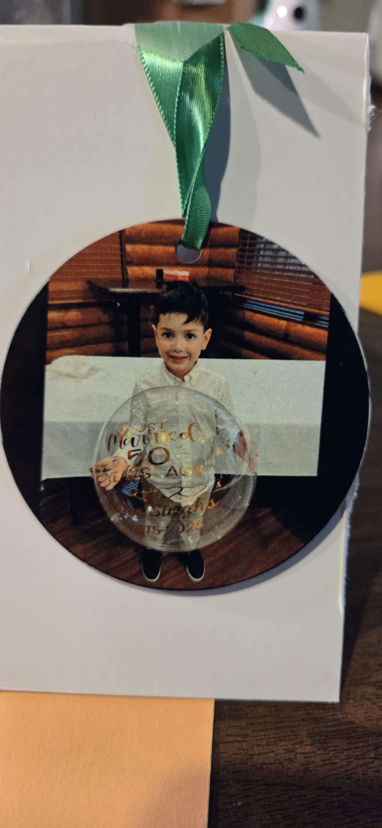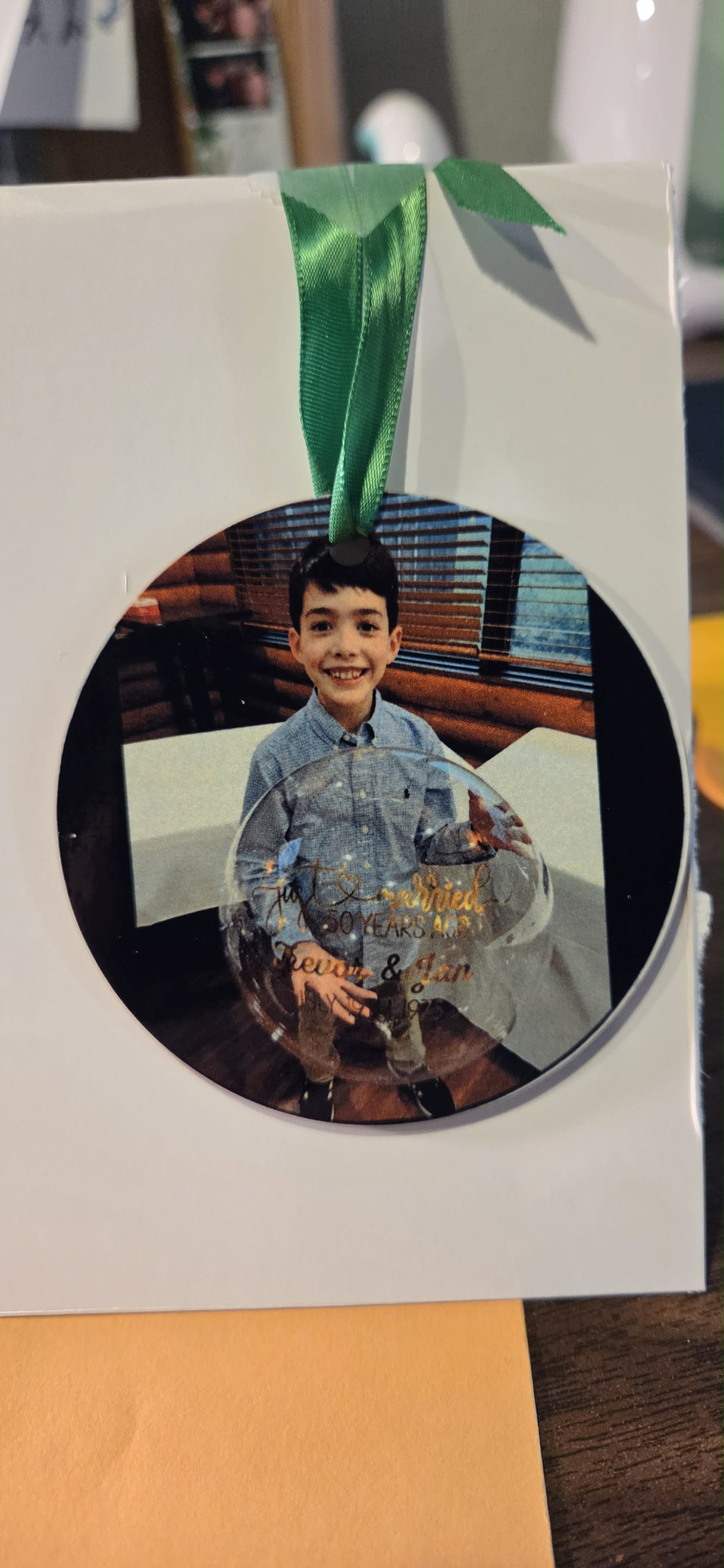 4 Inch Custom Ornament (Flat) Let's work together to dream up a custom design for a Christmas Ornament! You choose the colors and design which can include family pictures. If you can dream it, I can make it! **Note that some images may not be usable due to copyright. (Examples of custom ornaments in the pictures, but yours can be completely different!)