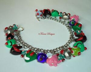 This is a One of a Kind OOAK Custom made Christmas theme Charm Bracelet. There are 18 charms of glass resin of Christmas Trees Wreath, Snowflake, Snowman, Stocking, and Bells. Gold tone Custom Bracelet is approximately 7 1/2 inches adorned with matching Lobster Clasp. Comes in Gift Box! From a smoke and pet-free environment