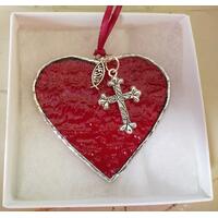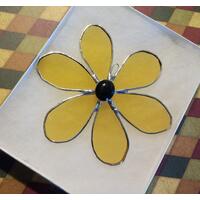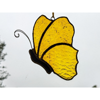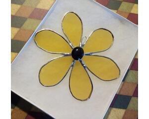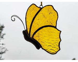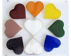 Each suncatcher is designed and made by me. Each piece is cut and ground to the perfect size. I use the Tiffany copper foil and solder method. This is followed with an application of black patina, then polished and rubbed to a pretty shine.