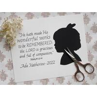 Another unforgettable part of our story with Ada was the way that God met our needs through His inspired Word, and that's why a portion of my shop is dedicated to silhouettes paired with hand-lettered calligraphy of Scripture verses. These serve a memorial not only of these priceless childhood days but also of the faithful God whose Word is able to accompany those children all their lives, through every joy and every sorrow.