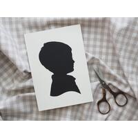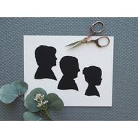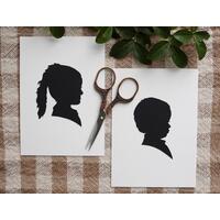 Each original silhouette portrait is designed just for you from your personal photos and is meticulously hand-cut from a beautifully textured black cardstock paper, taking care to preserve the special features that make your children unique!
