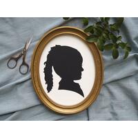 I’ll set to work creating a beautiful likeness and message you with a sneak peak of your hand cut silhouette within 7 days, depending on how many other silhouettes I am busy creating!