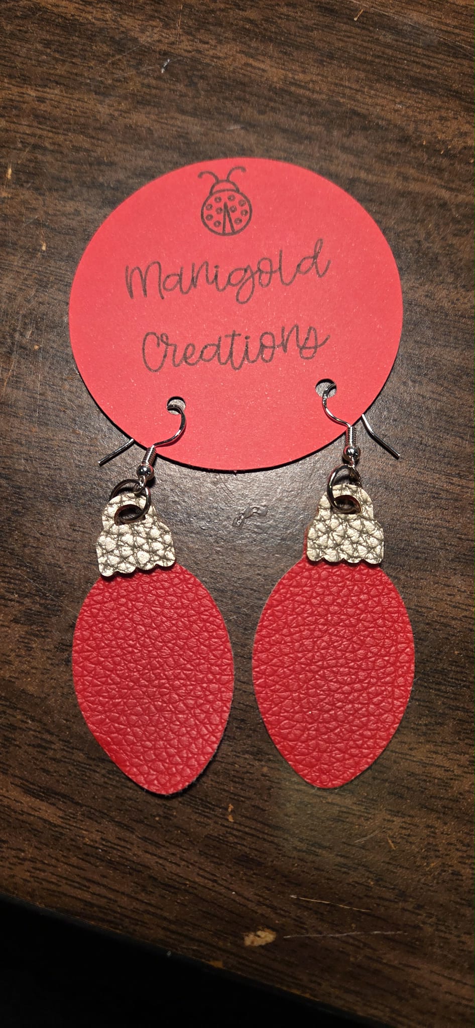 Custom faux leather earrings. You can pick from any of the current designs or dream up something of your own. Colors are customizable. Between 1.5 & 2 inches and super light. If you can dream it I can make it!